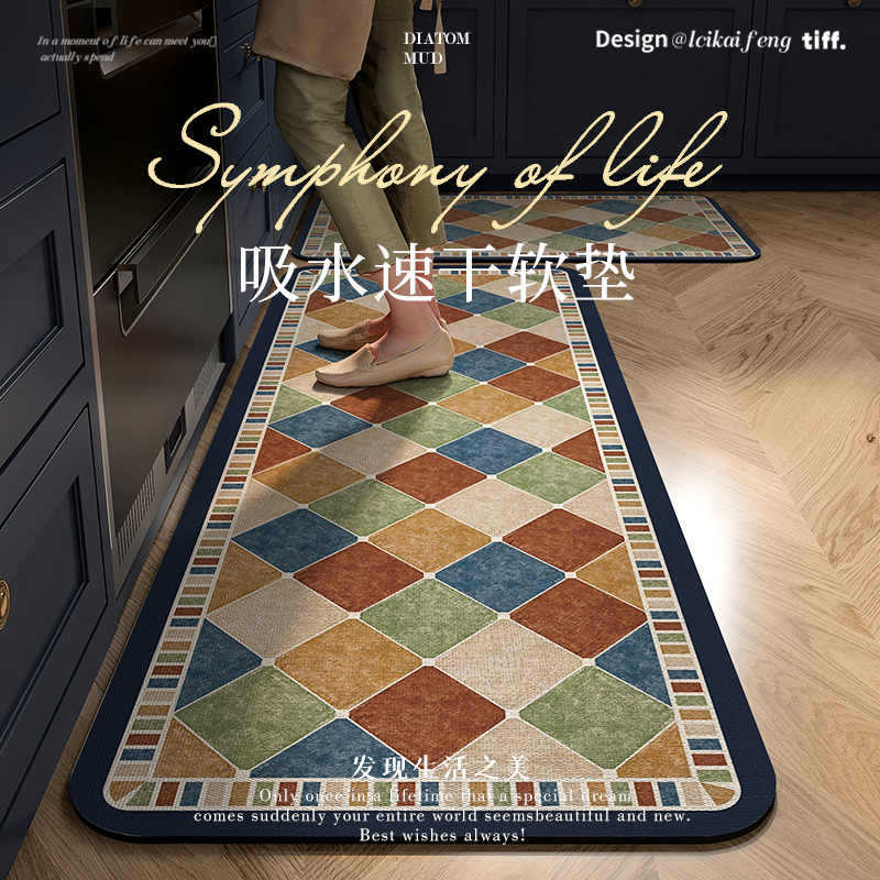 中古风厨房地垫防滑地毯防油专用防水长条吸水加厚硅藻泥脚垫地