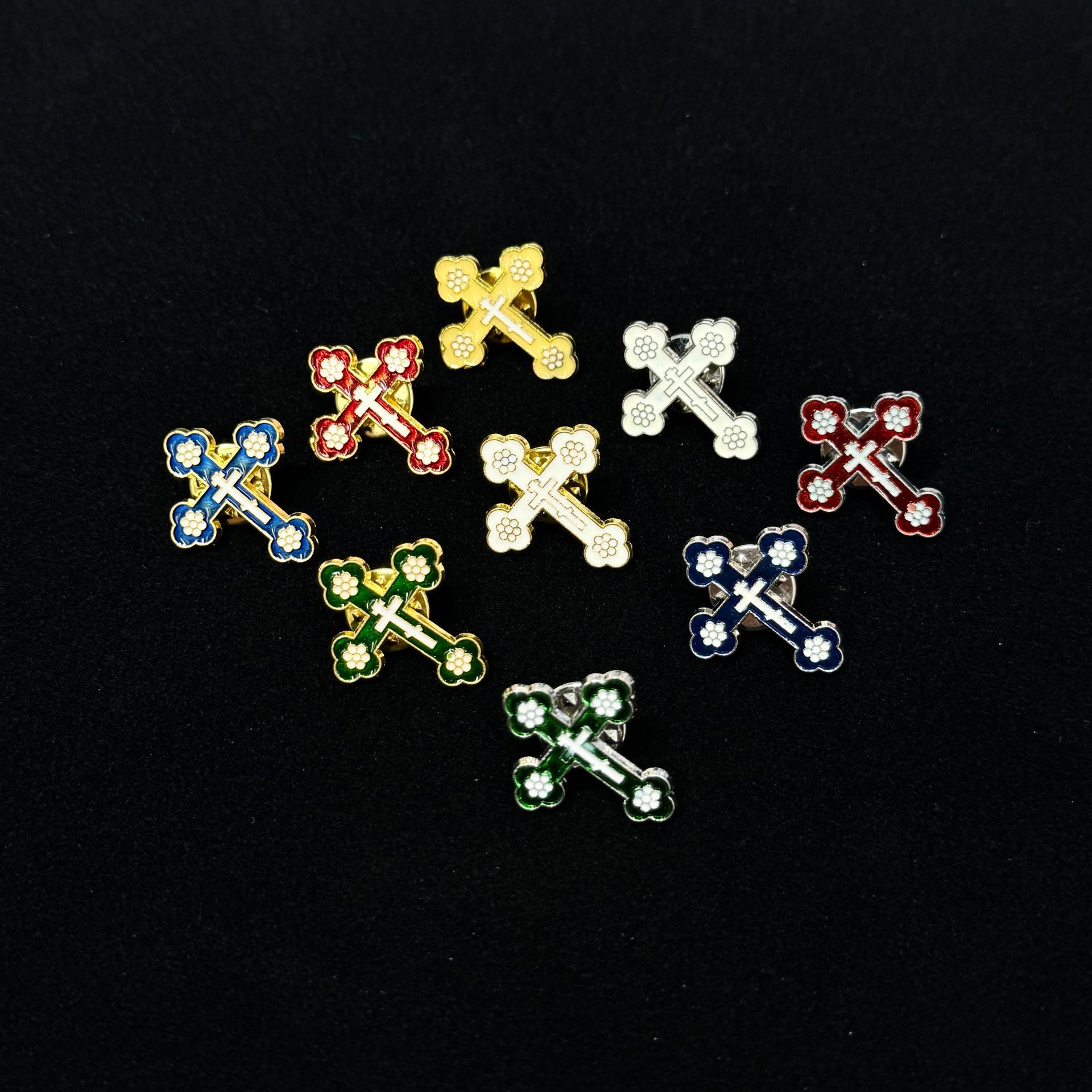 カラフルなオイルドリップ合金クロスブローチ絶妙な記念ギフト信仰アクセサリースーツバッジピンギフト