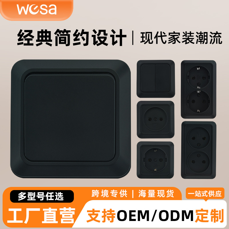 クロスボーダー対外貿易ヨーロッパ標準壁コンセント10A多機能壁スイッチ大電力家庭用黒色電気コンセント