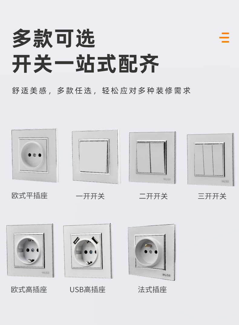 国境を越えたヨーロッパ標準スイッチ電源ソケットパネル家庭用 86 タイプ壁 1 オープン 2 オープン 3 オープンスイッチソケット卸売