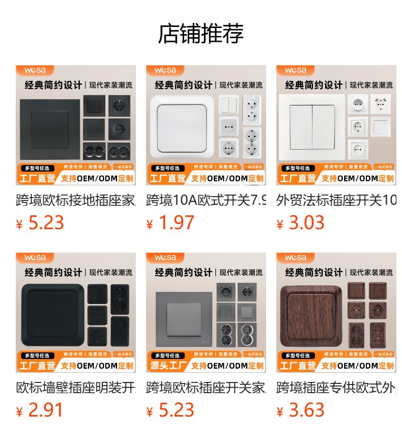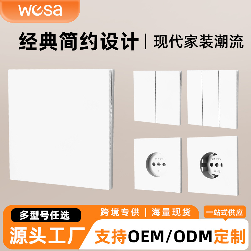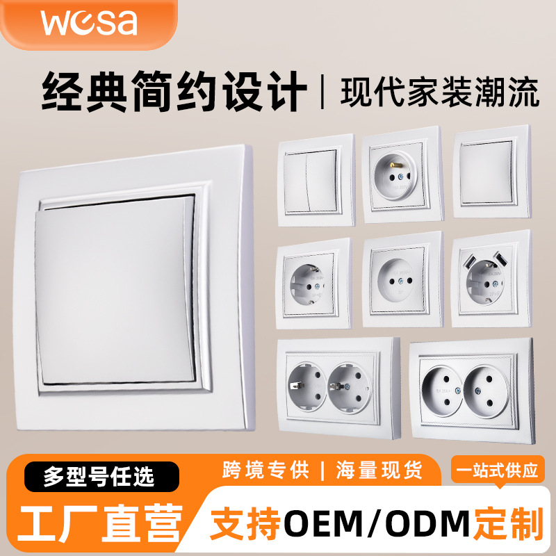 欧标插座白色塑料面板家用86型欧规耐用阻燃安全墙壁电源开关