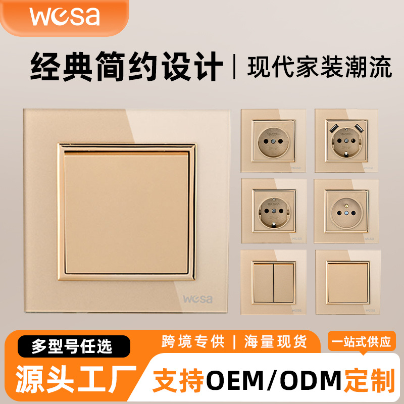 クロスボーダー肌色スイッチパネル 86 リン銅部品壁スイッチソケット家庭用大型ボード電源ソケット外国貿易卸売