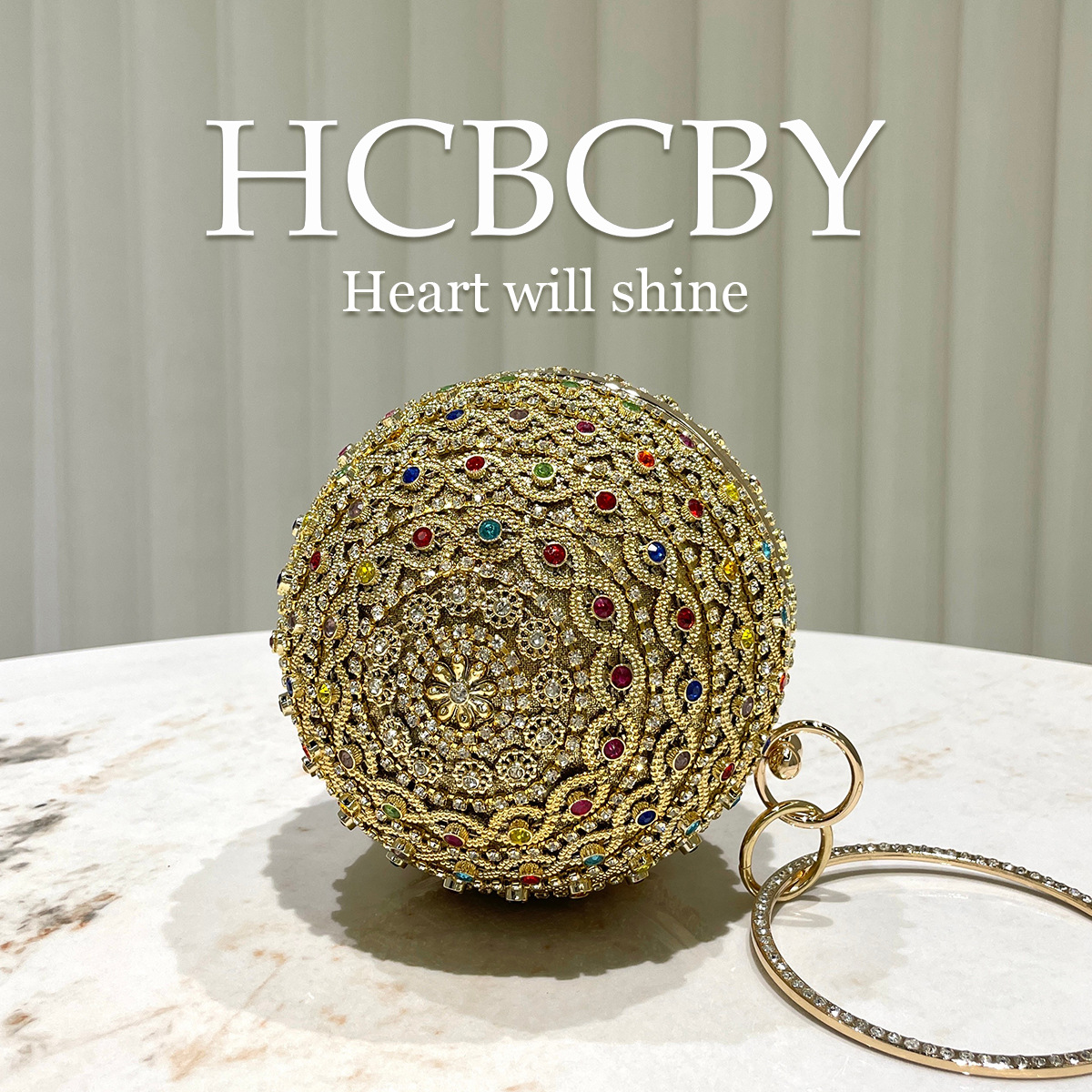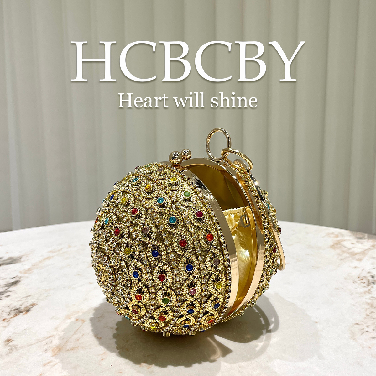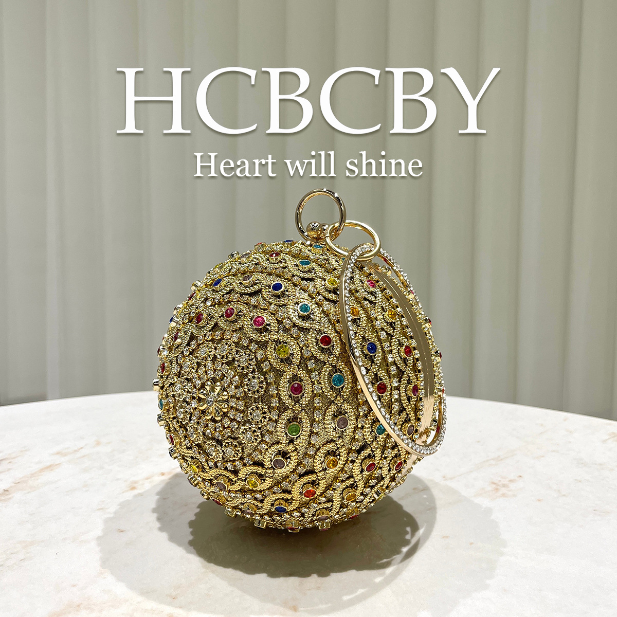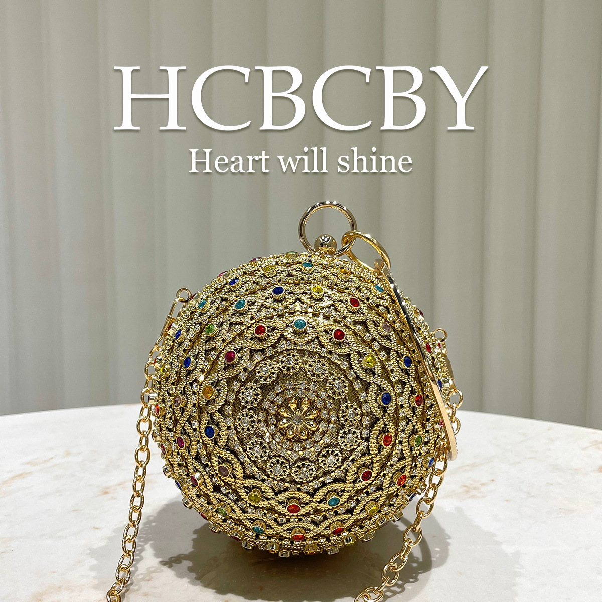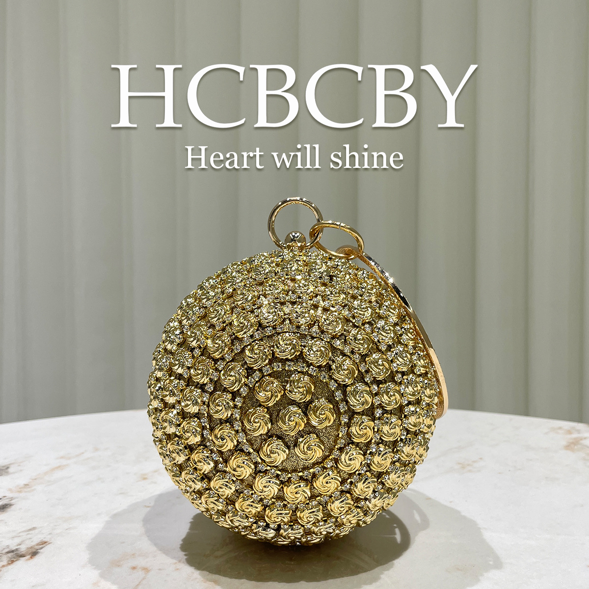 金色の閃光の豪華なドリルの装飾の球形の包みの女性のファッションの気質の優雅な手は包みの晩餐の包みを持ちます。
