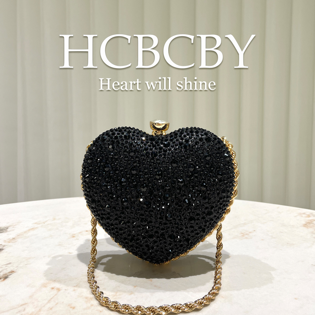 黒の華麗なフラッシュドリルハート型ハンドバッグ女性ファッション気質高級感ドレスバッグ晩餐バッグ