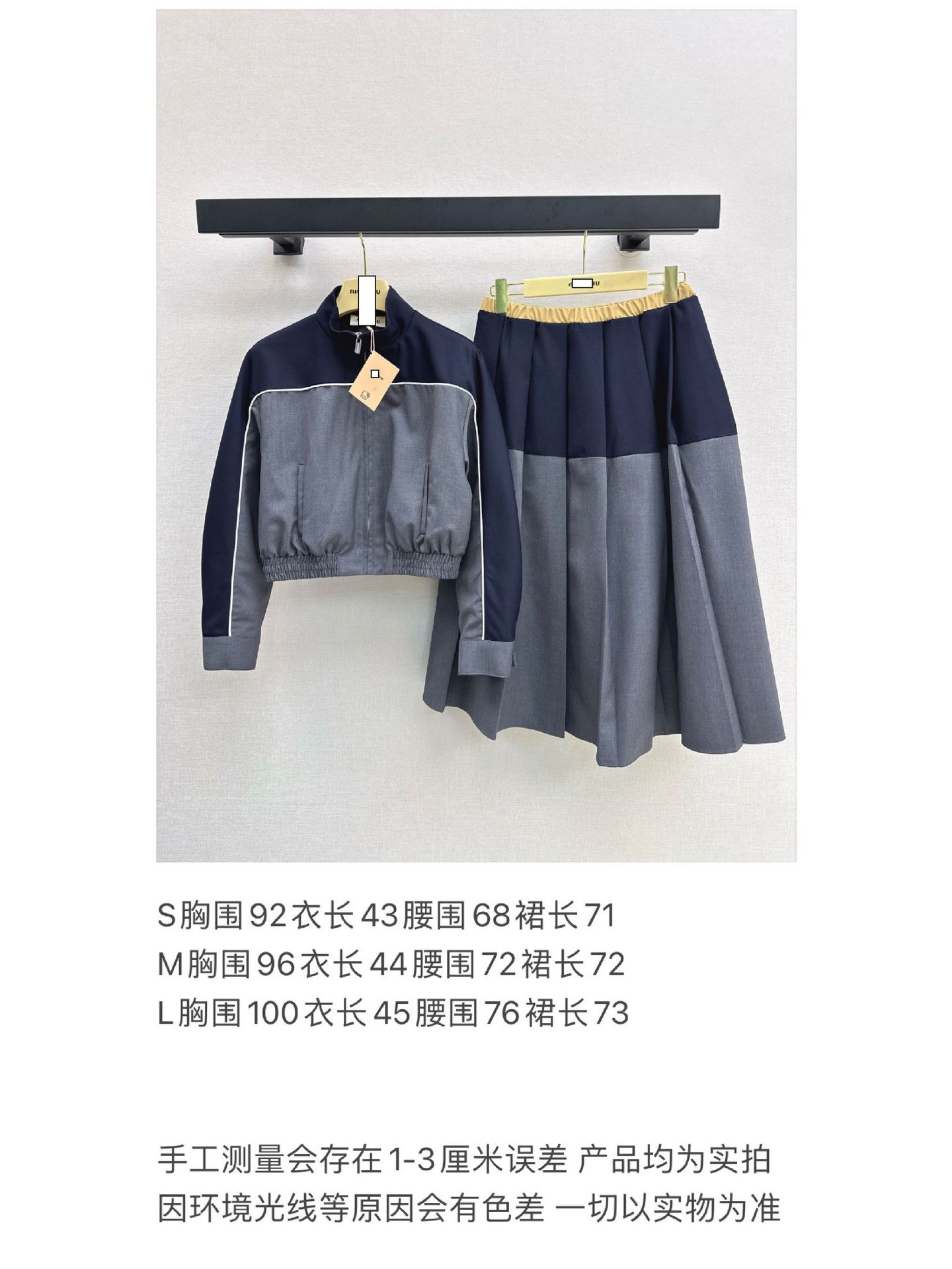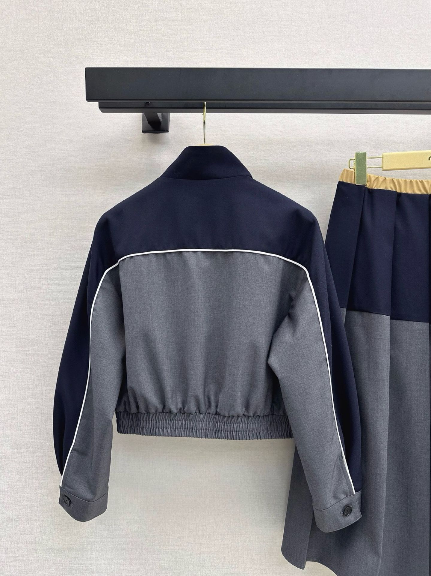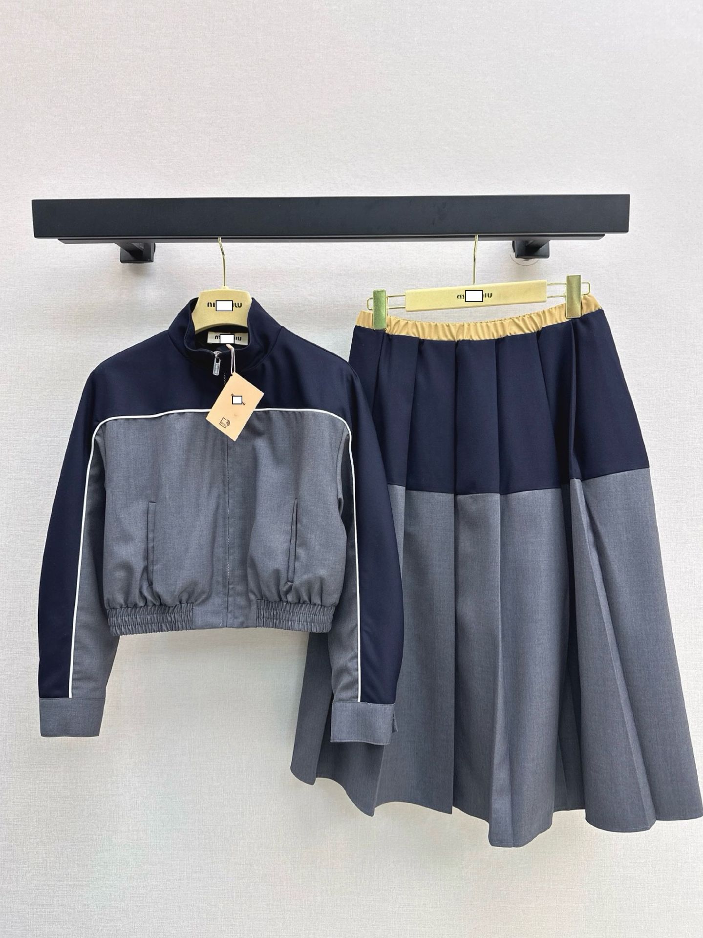 深圳南油2025春夏蓝灰拼色运动少女套装夹克外套+松紧腰压褶半裙