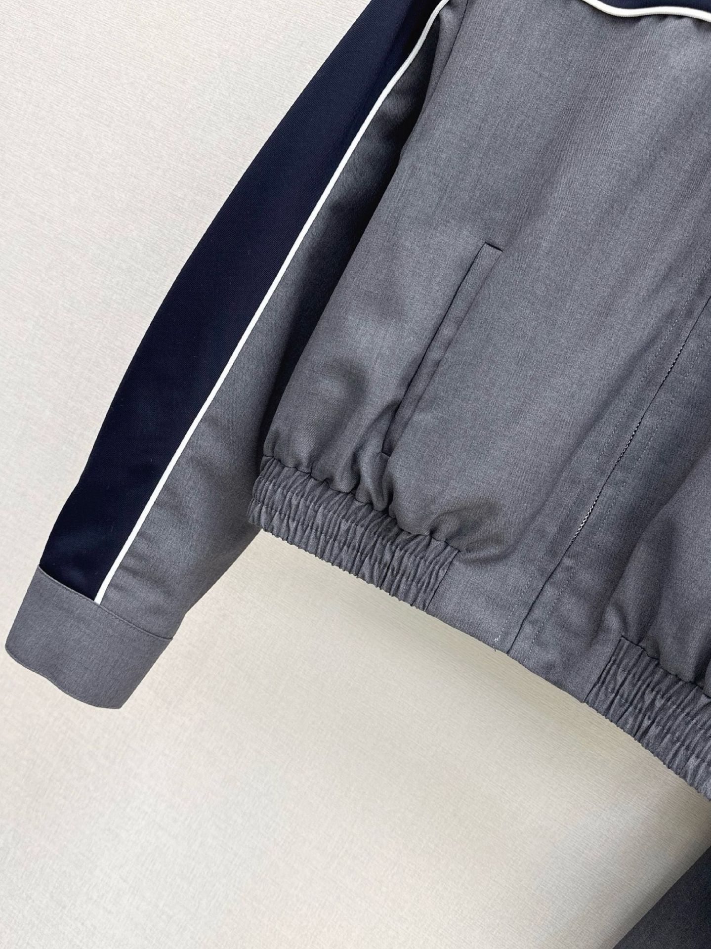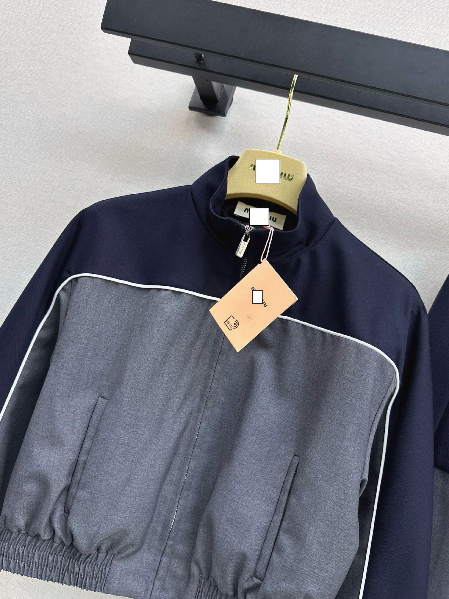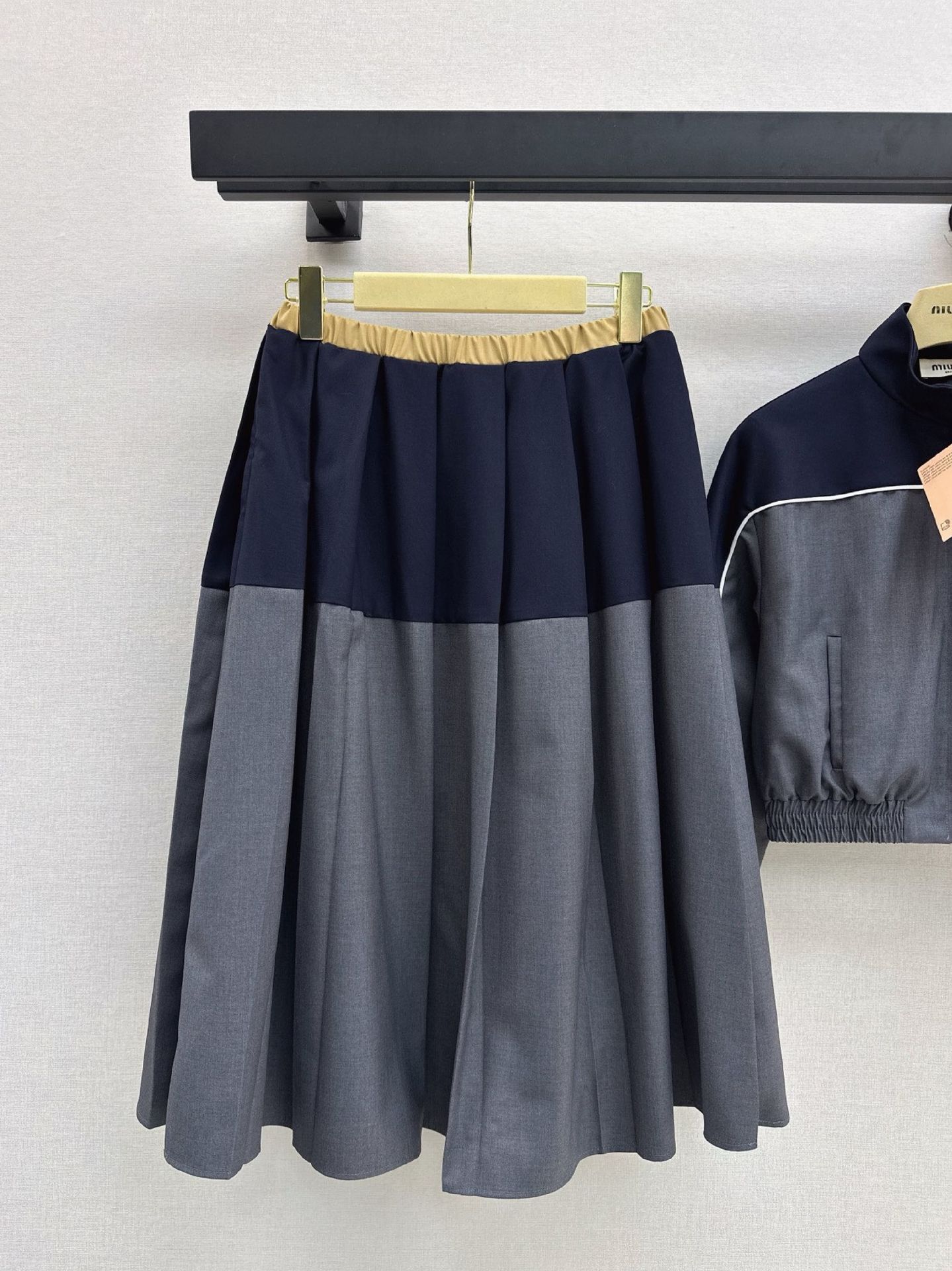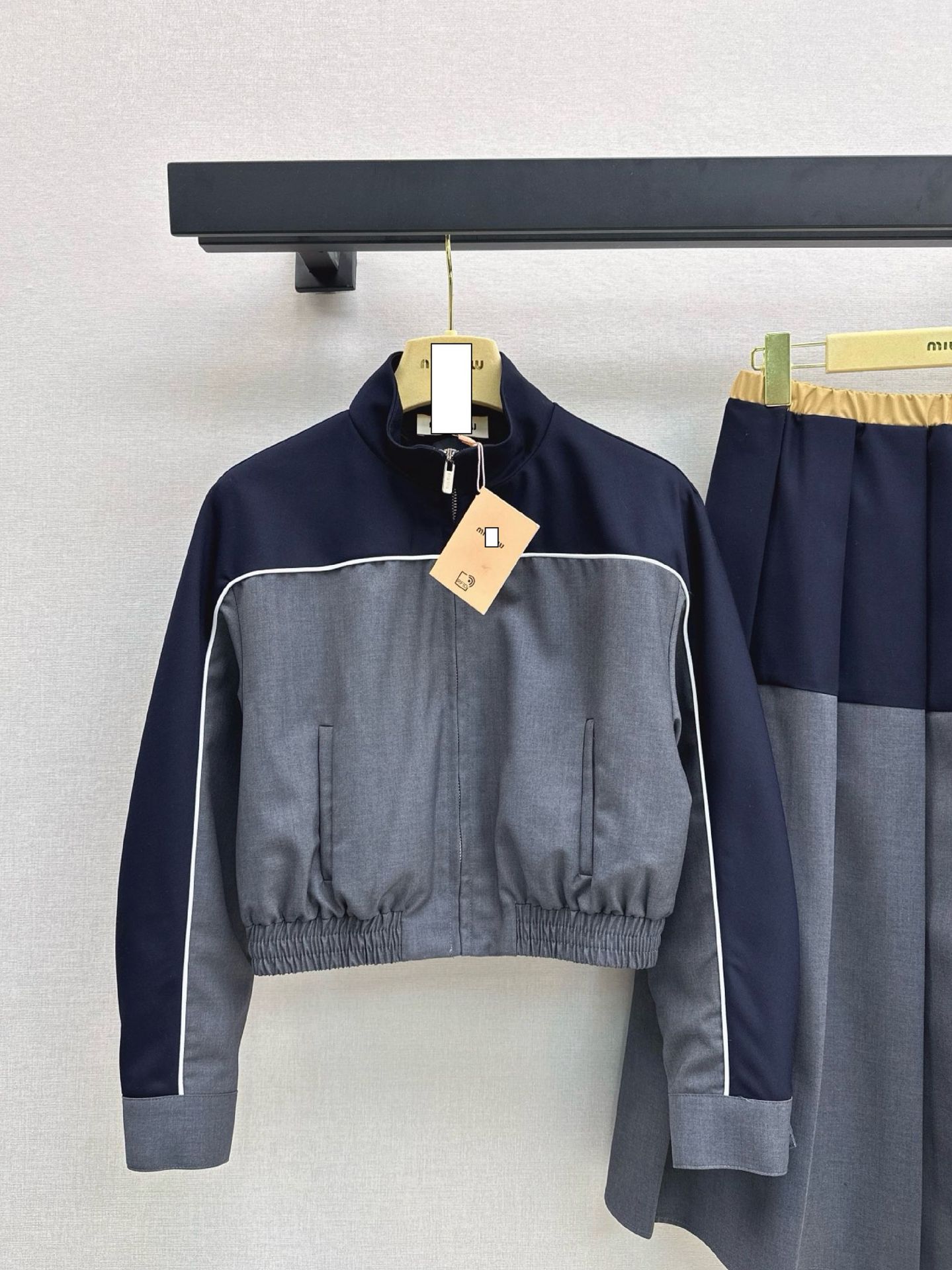 深圳南油2025春夏蓝灰拼色运动少女套装夹克外套+松紧腰压褶半裙