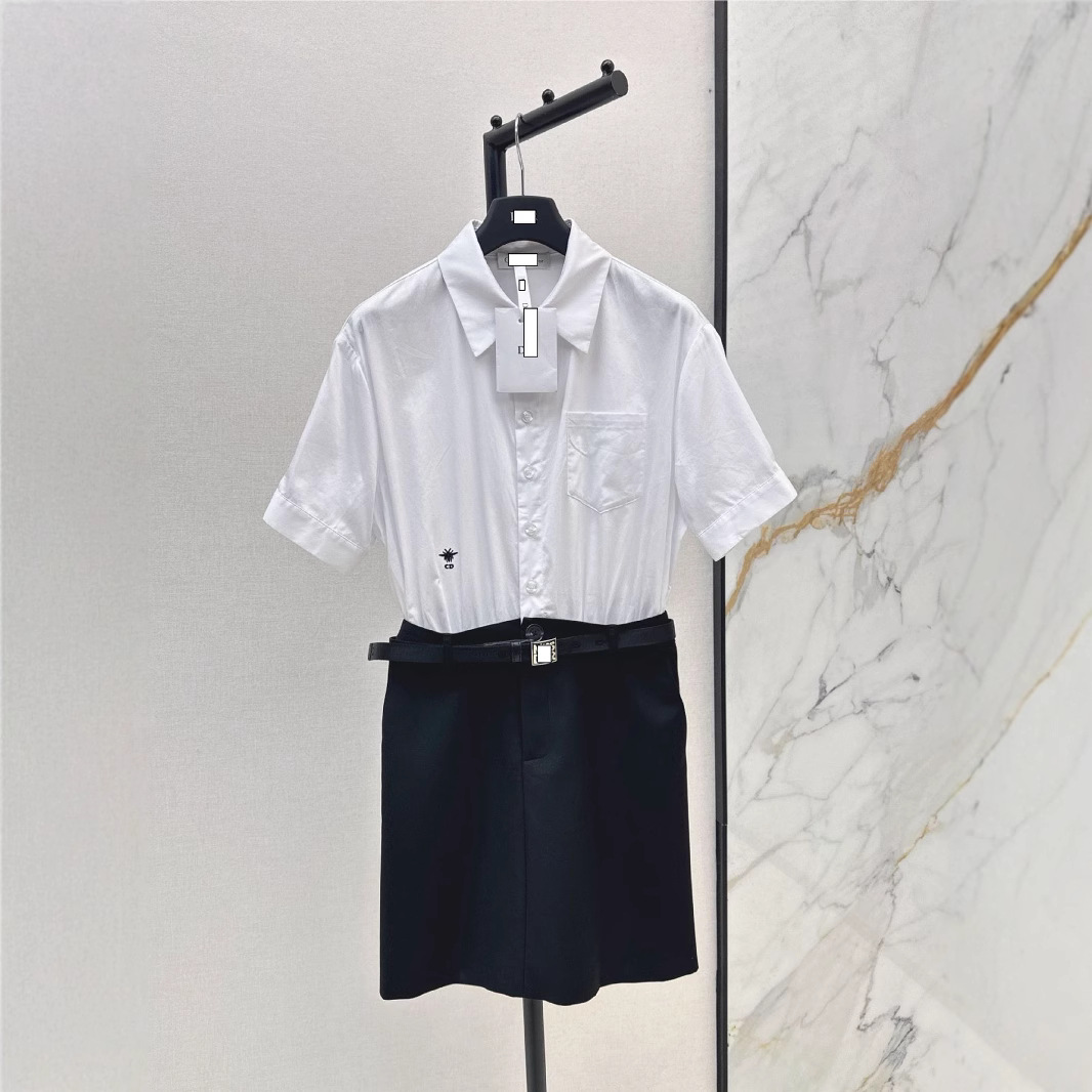 深圳南油25春夏高端女优雅气质百搭腰带拼接翻领衬衫连衣裙