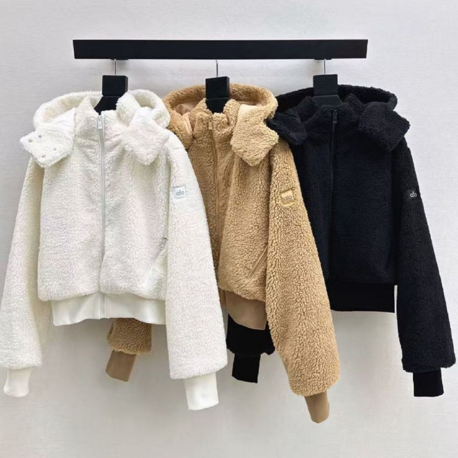 深圳南油25秋冬高端女装运动风休闲拼接螺纹毛绒外套