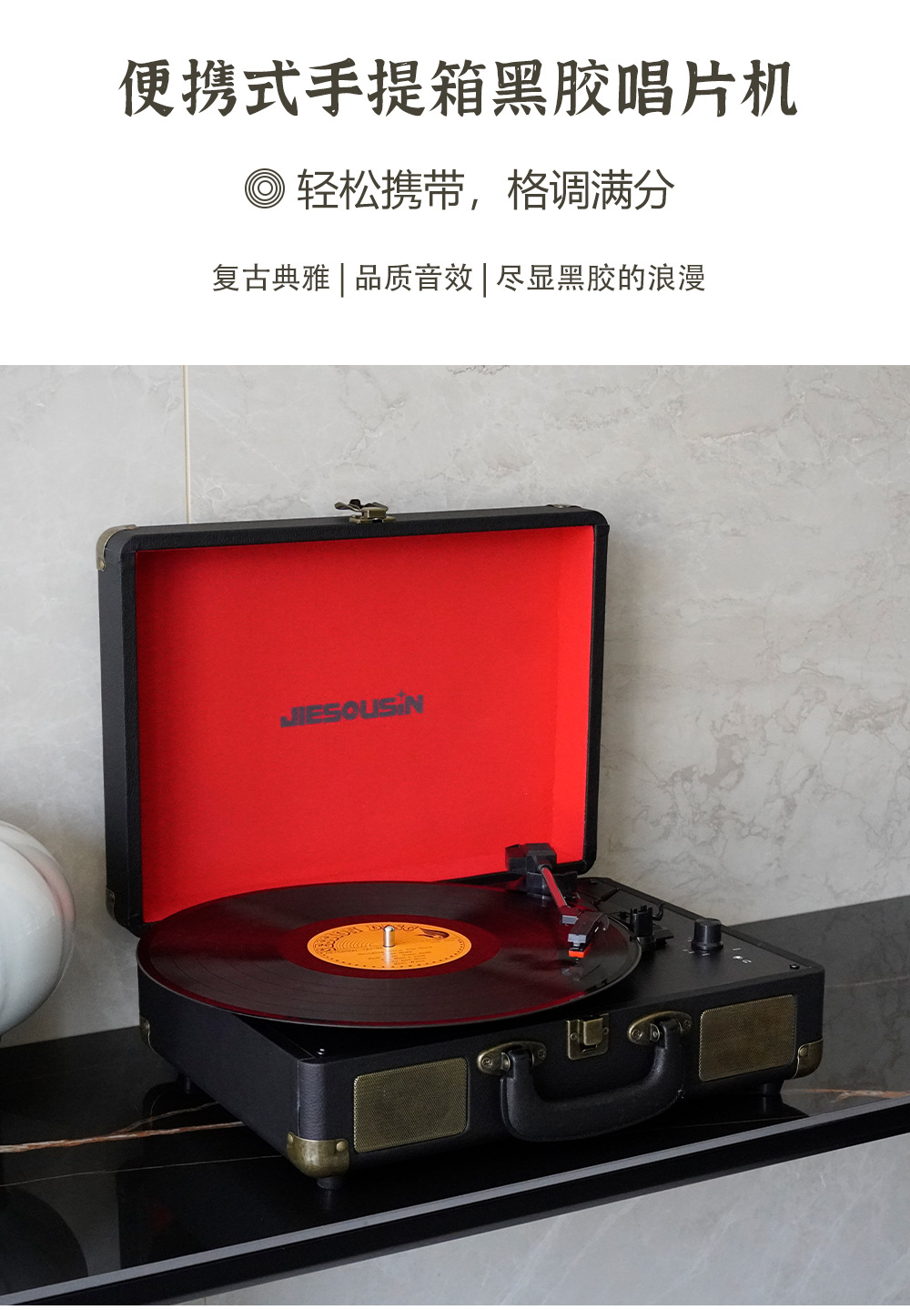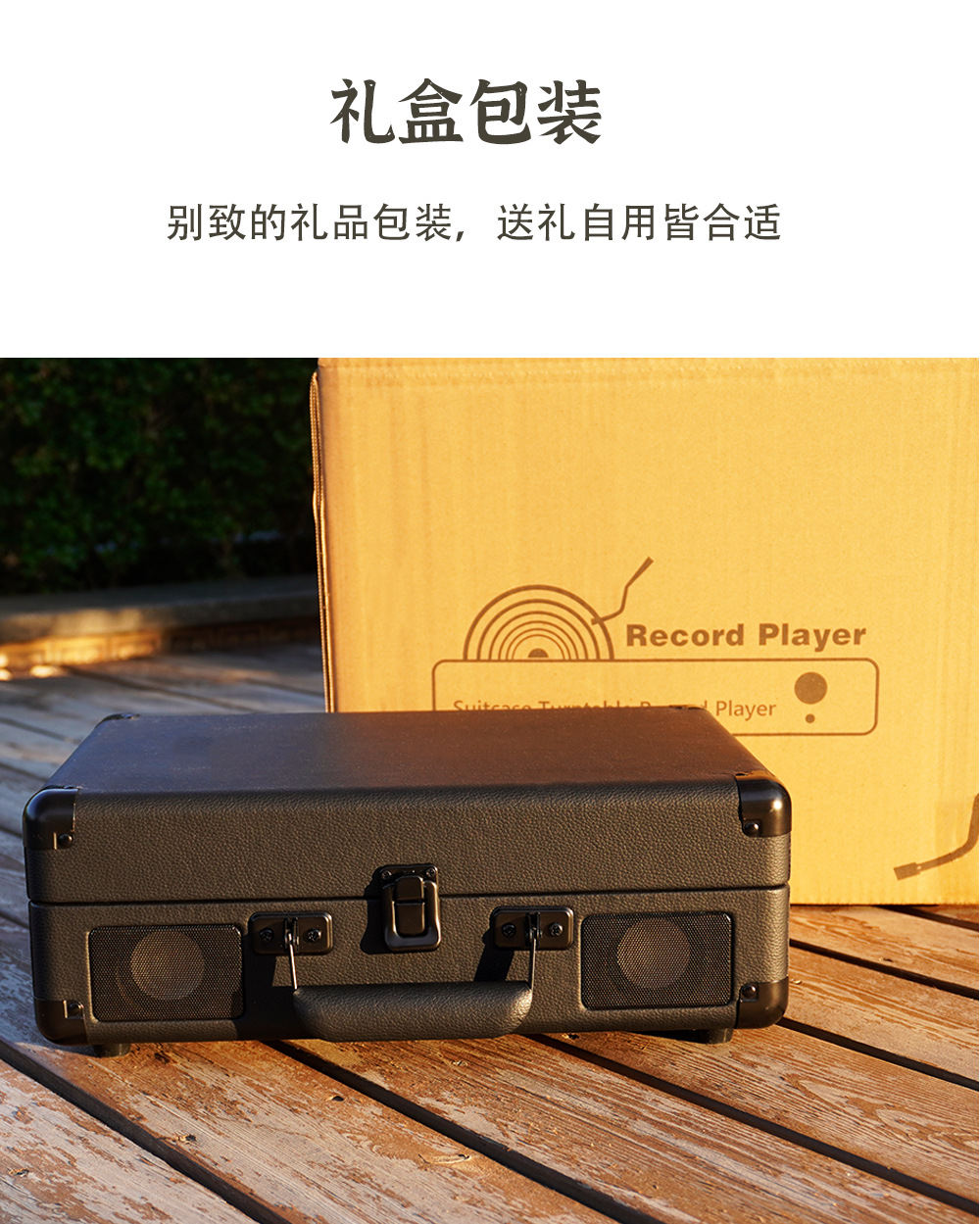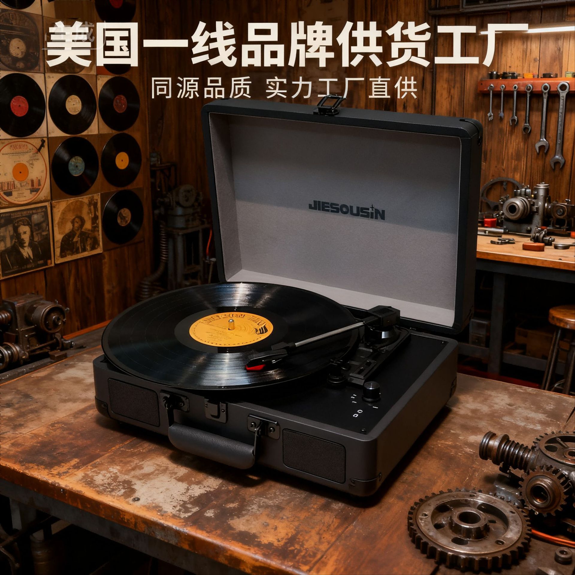黒ゴムレコード機ファッションレトロ携帯式屋外bluetoothスピーカー家庭用リビングルーム蓄音機レコード機