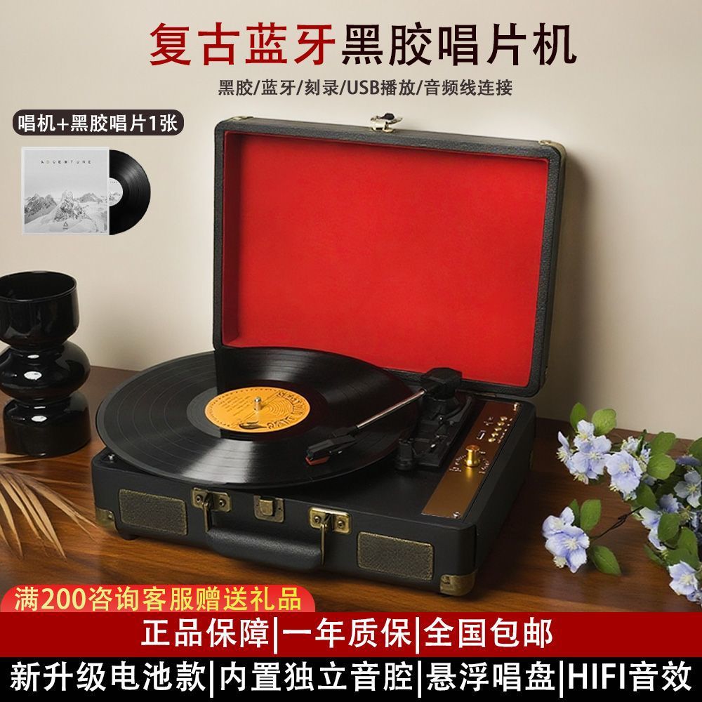 黑胶唱片机多功能一体机电唱机老式高音质蓝牙音响复古留声机礼物