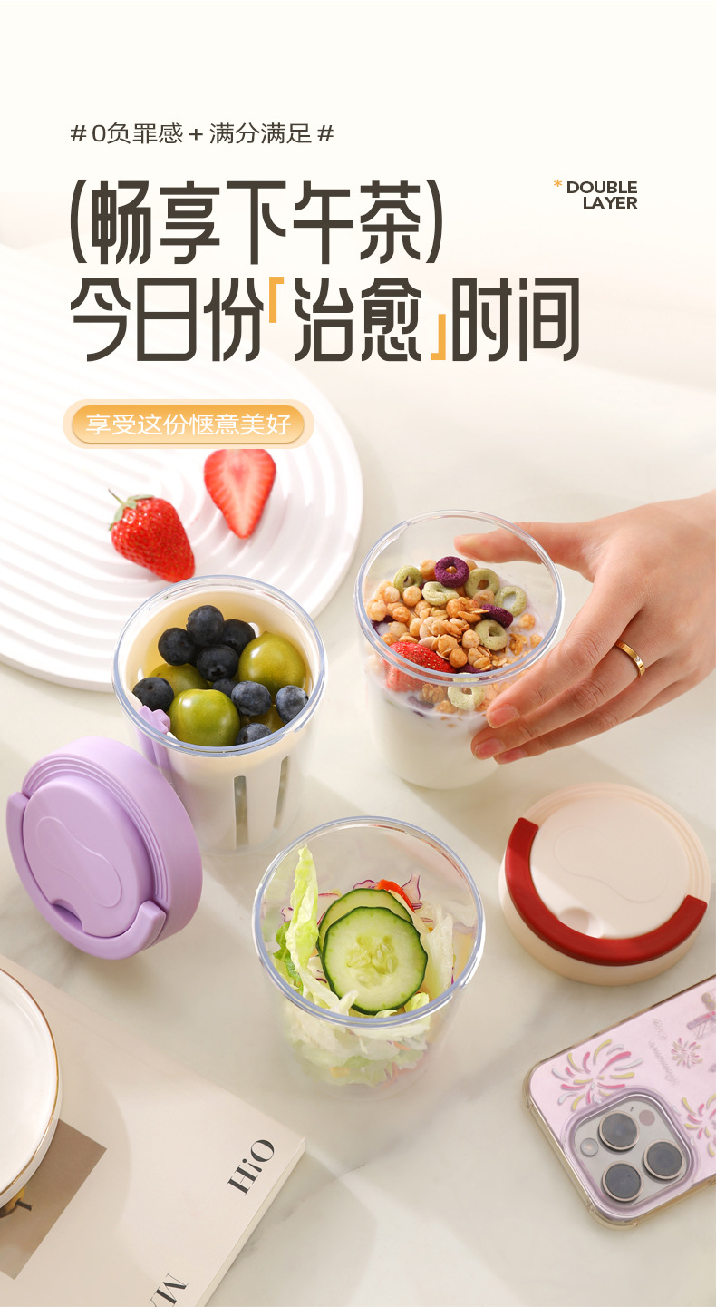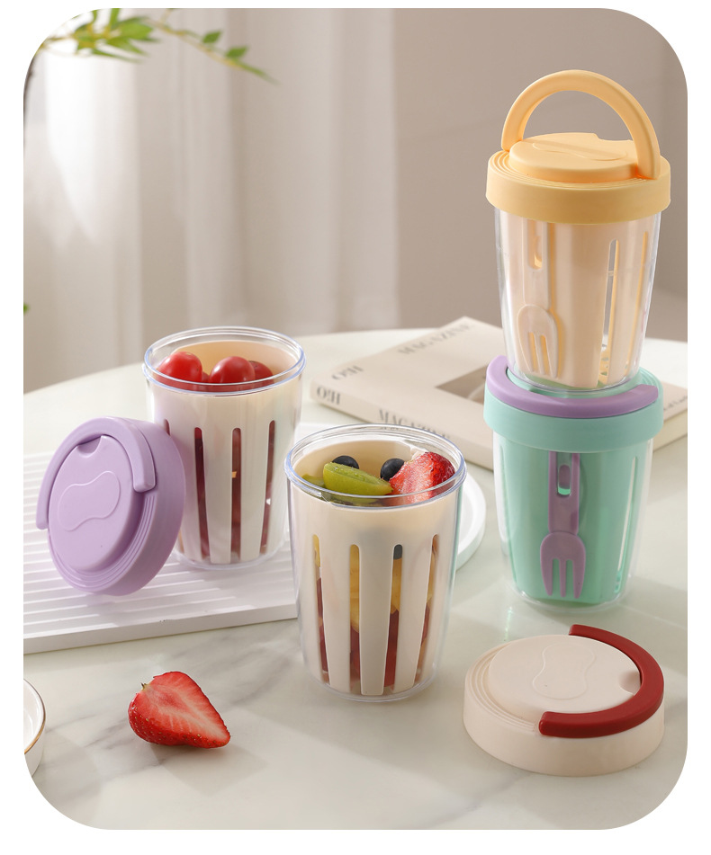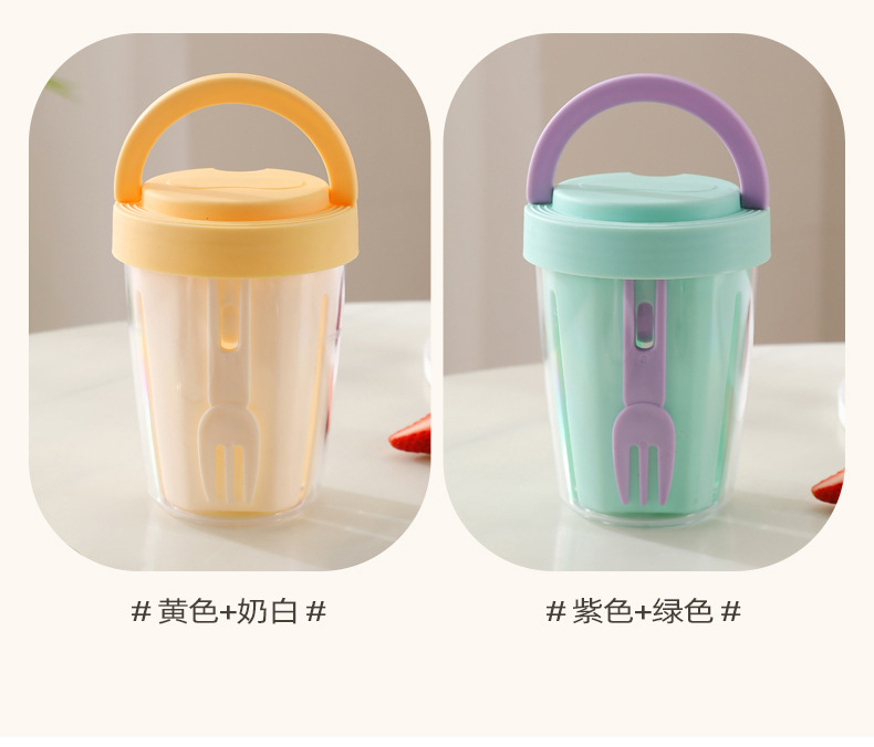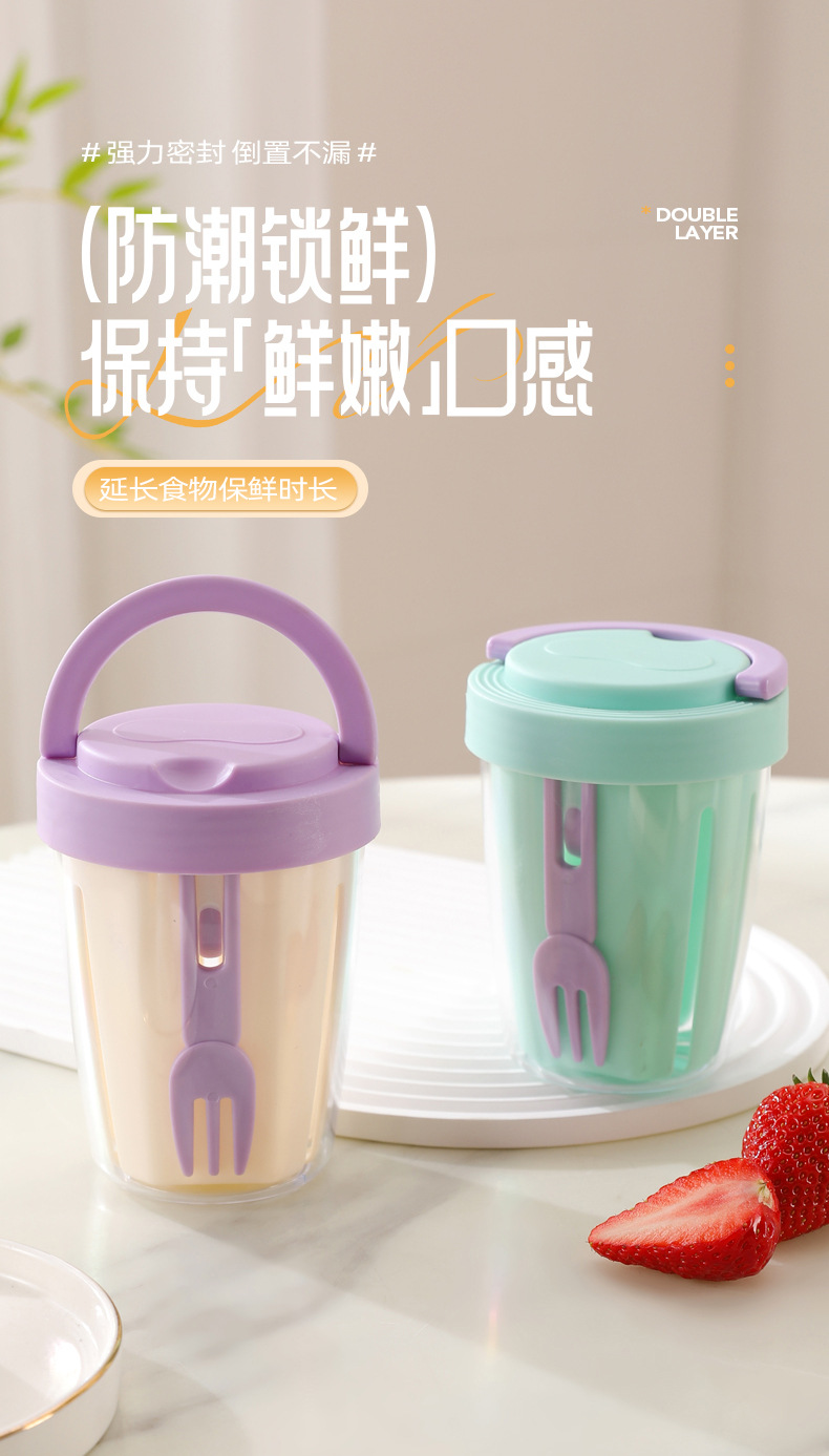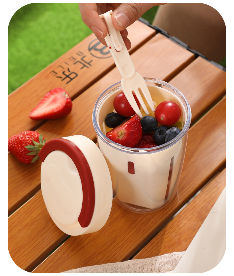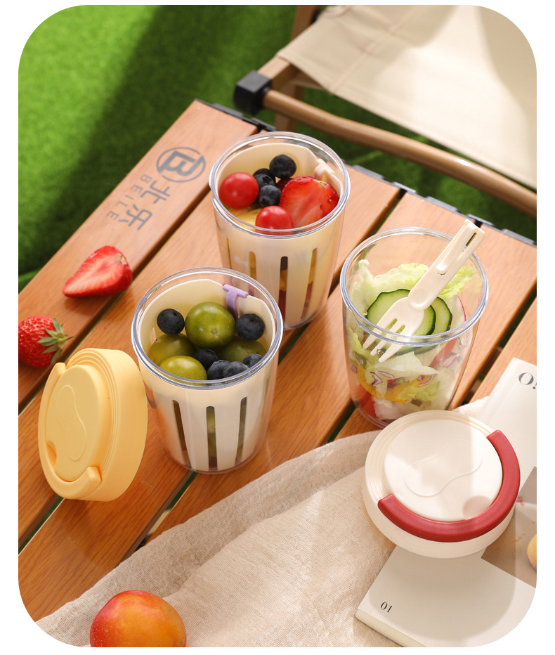 フルーツカップ二層水切りサラダカップ携帯型水切りフォーク風朝食外ピクニックオート麦カップ卸売り