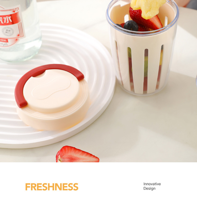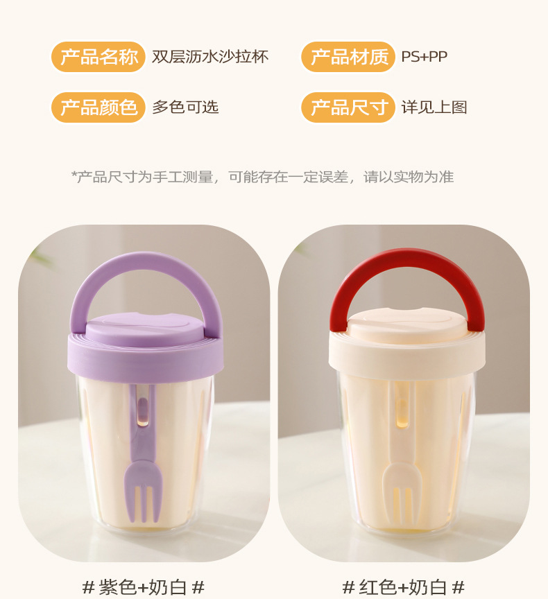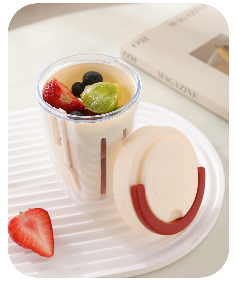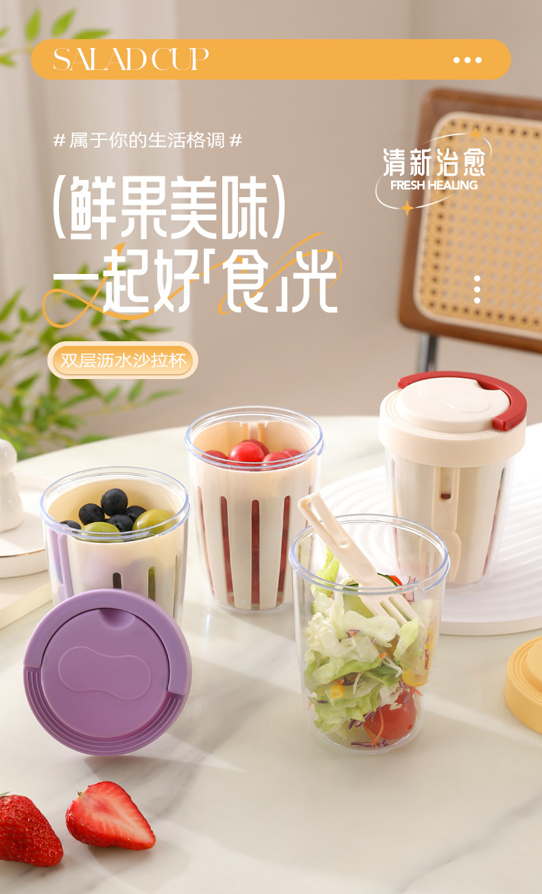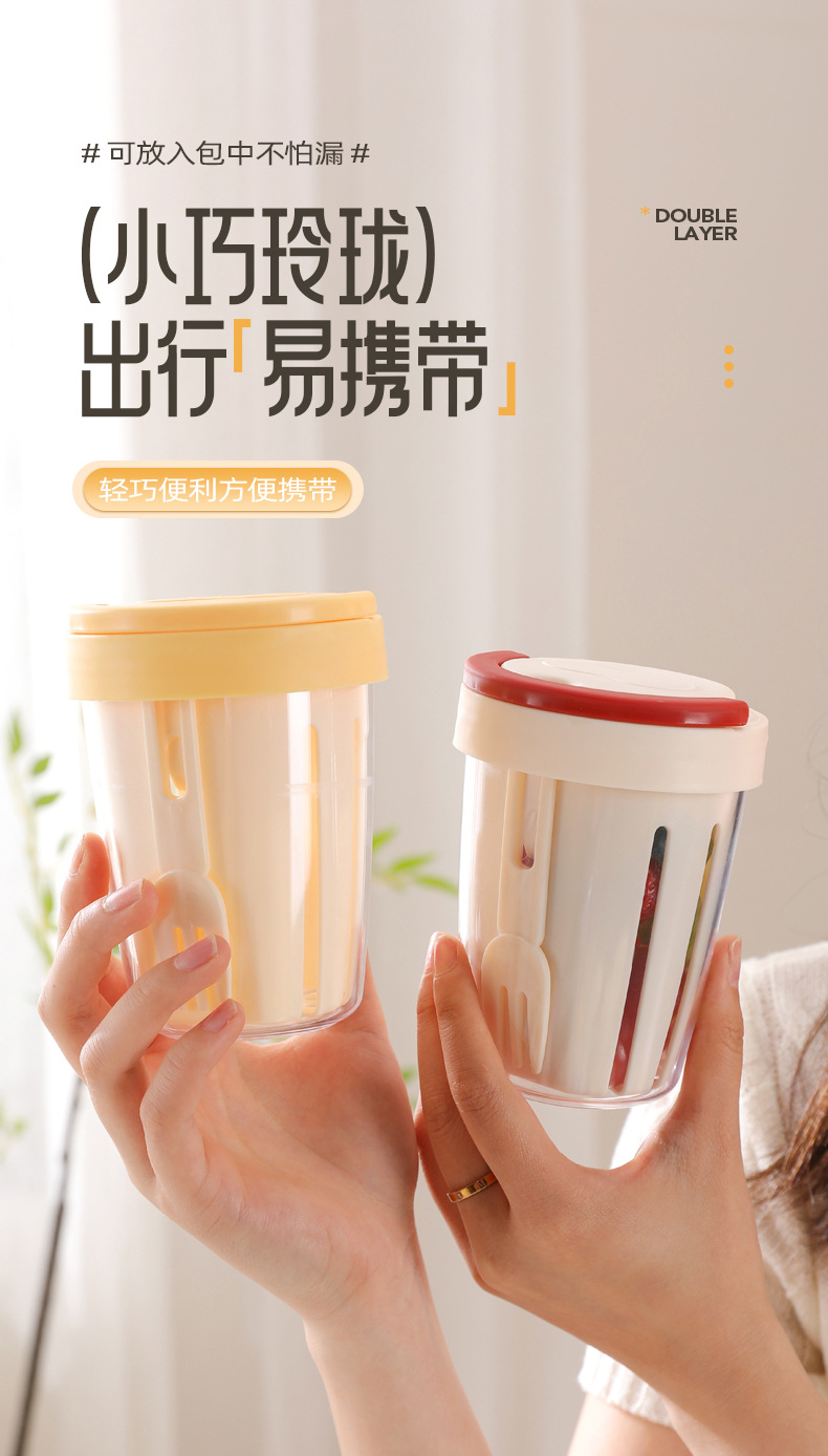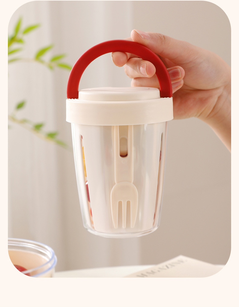 フルーツカップ二層水切りサラダカップ携帯型水切りフォーク風朝食外ピクニックオート麦カップ卸売り