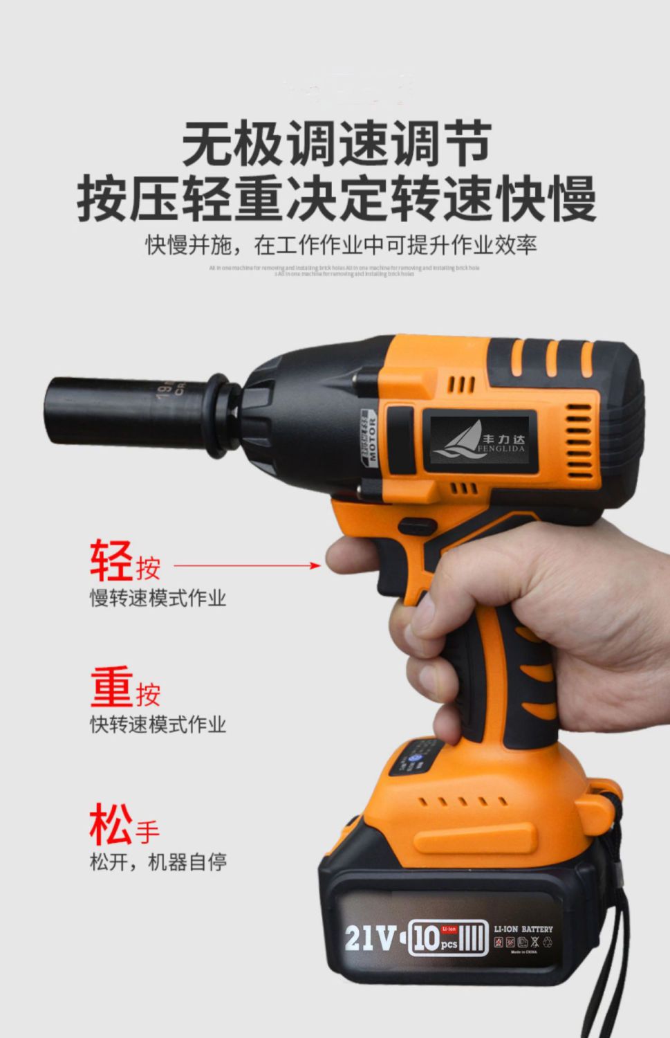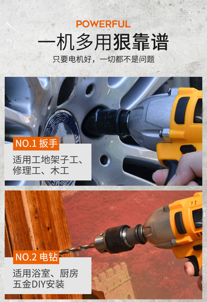 ブラシレス電動レンチ大トルクフレーム工衝撃板手タイヤ自動車修理工具リチウム電気充電風砲