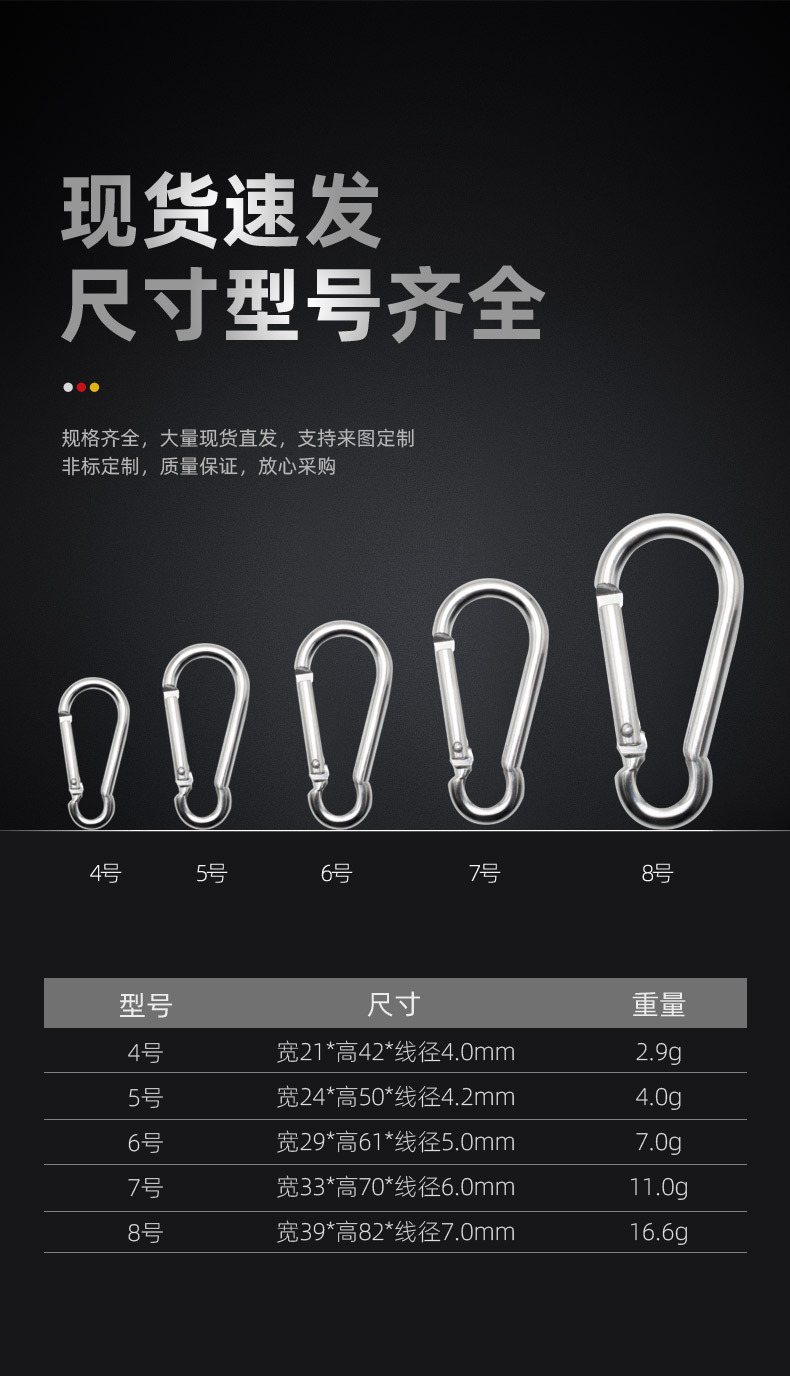 4-8号葫芦型登山ボタンアルミ合金フック屋外快掛ミニ多機能スプリングボタン鍵バックル