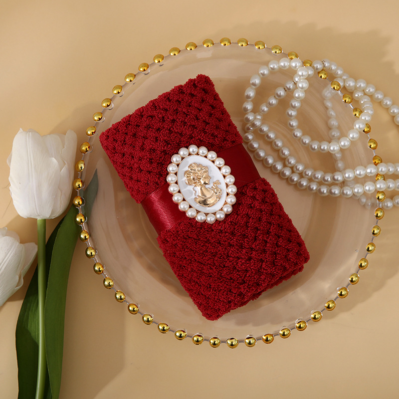 お土産のサンゴのベルベットのバロックの結婚の喜びの店の祝日の贈り物の贈り物の中で結婚の喜びの店のお土産のタオルを掛けます。