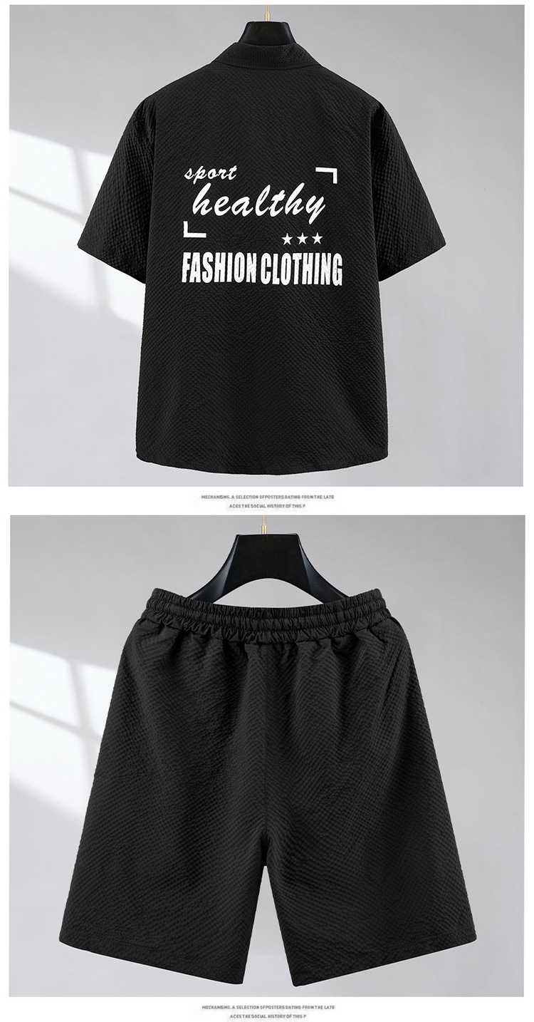 デブ半袖シャツ男性半袖夏の薄いタイプのゆったりとしたプラスサイズのファッション格好いいシャツパンツセット