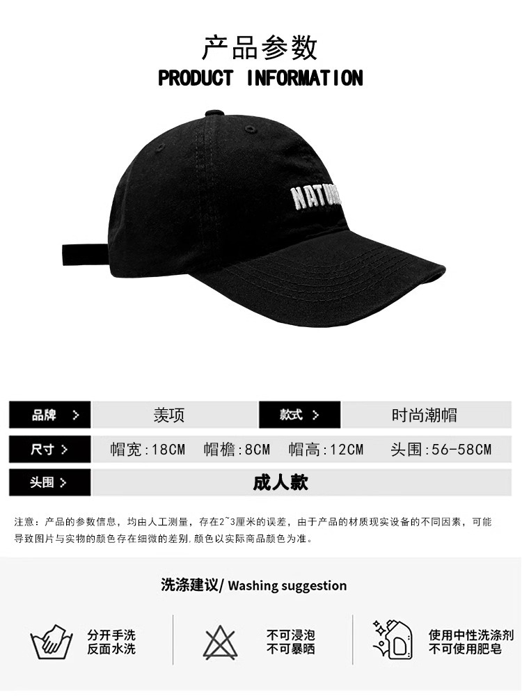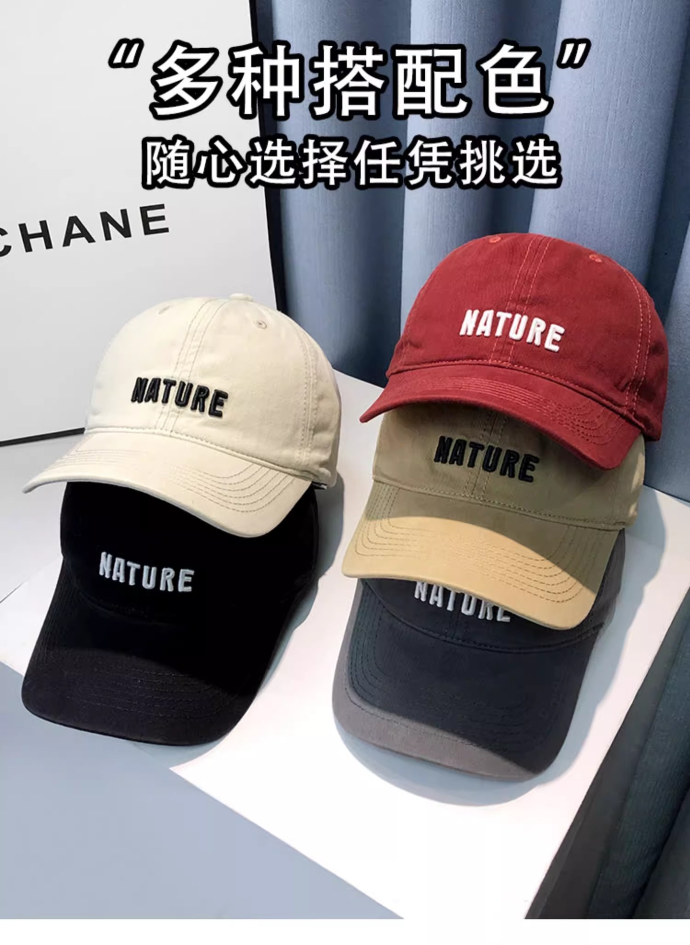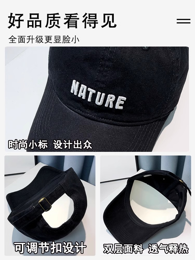 韓国版の春と秋の新しい女性用帽子、刺繍文字入りコットンベースボールキャップ、ストリート多用途カーブつば日焼け止めひさしキャップ、男性用