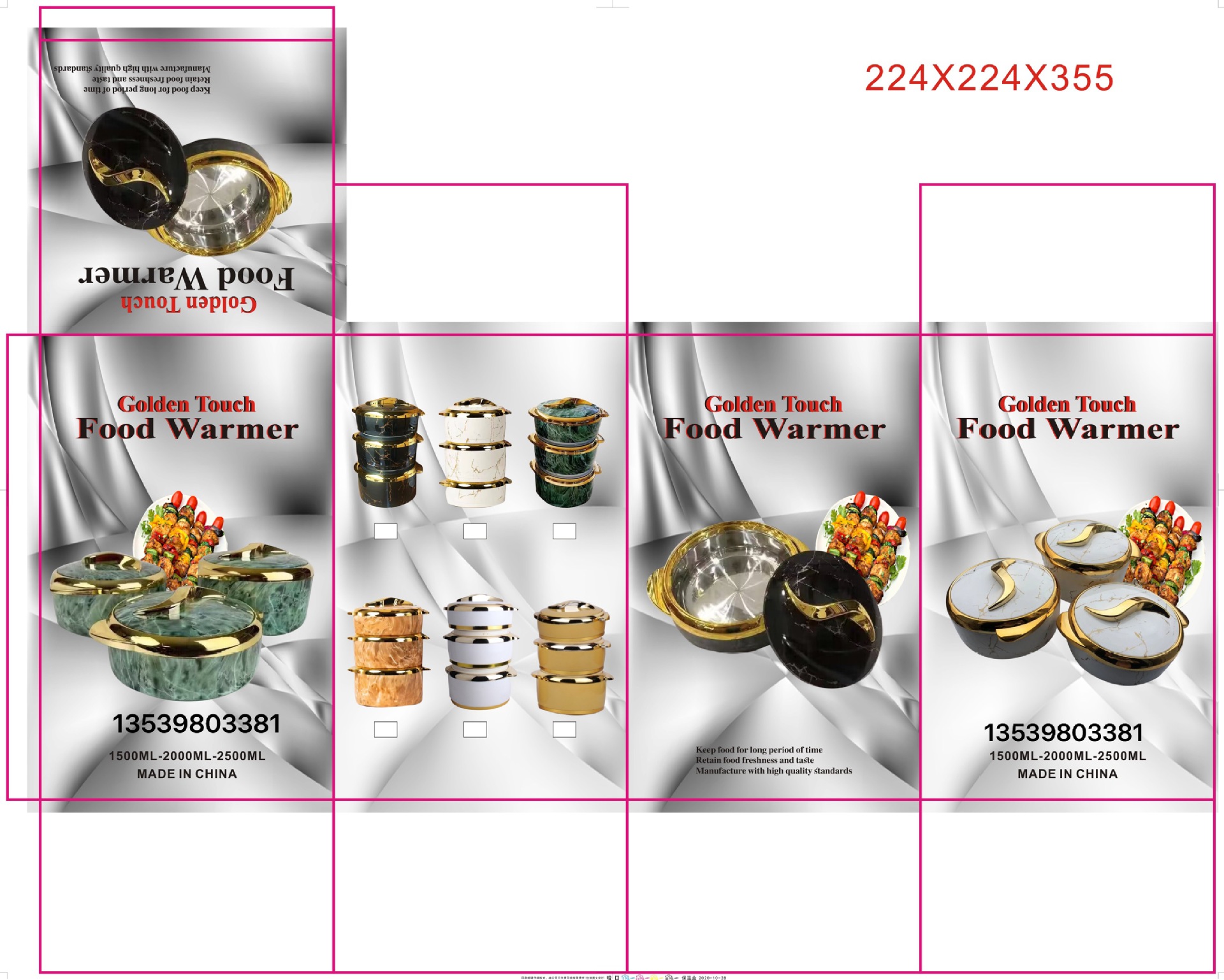 対外貿易3pcs金辺保温ケース2.5l 4.5l 6.5l