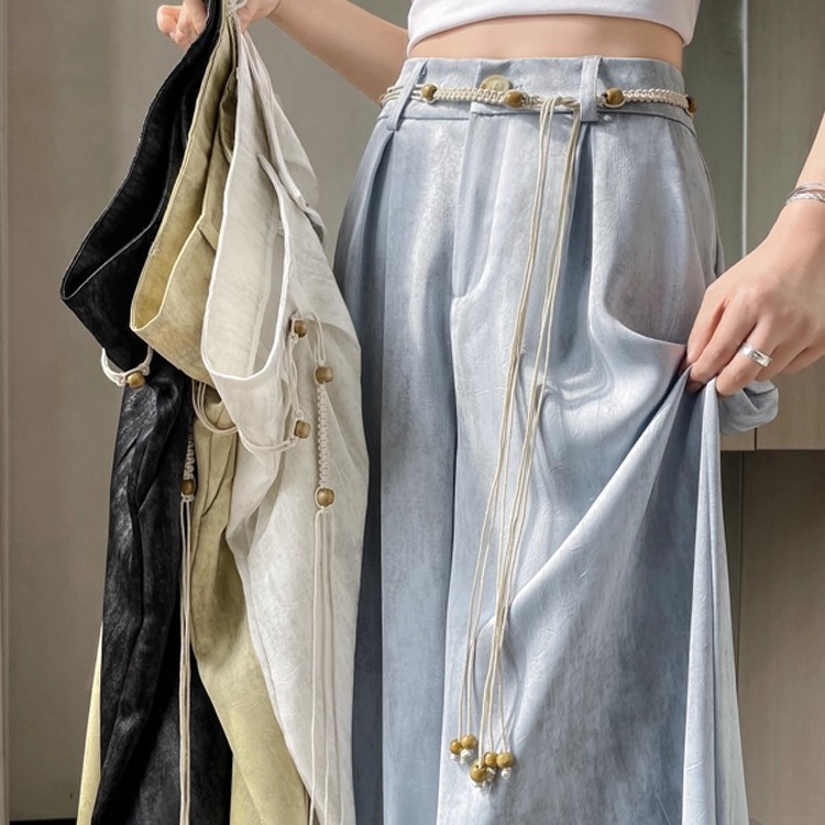 冰丝醋酸缎面扎染西装阔腿裤女夏季薄款高腰垂感防晒休闲拖地裤子