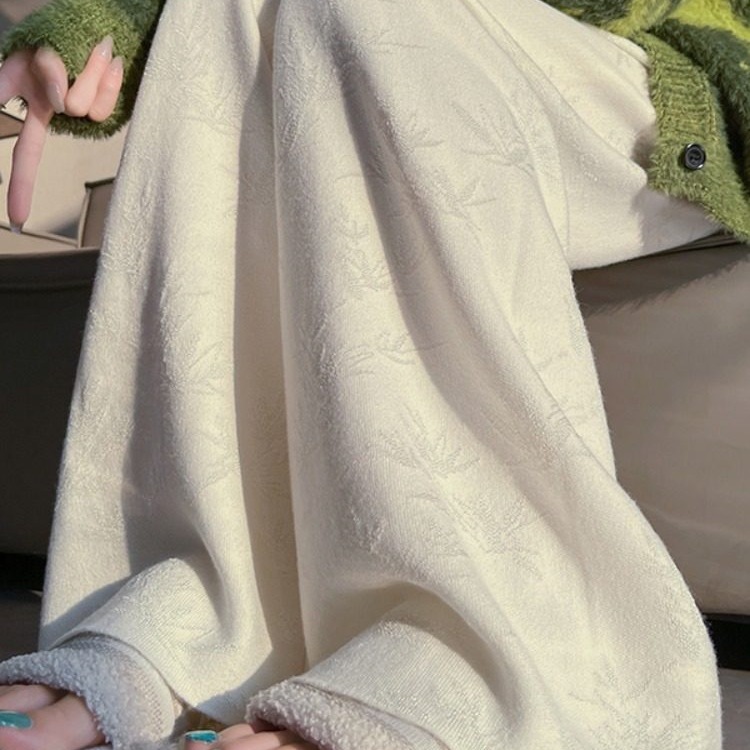 新中式国风提花针织阔腿裤女秋冬大码胖mm垂感高腰显瘦直筒拖地裤