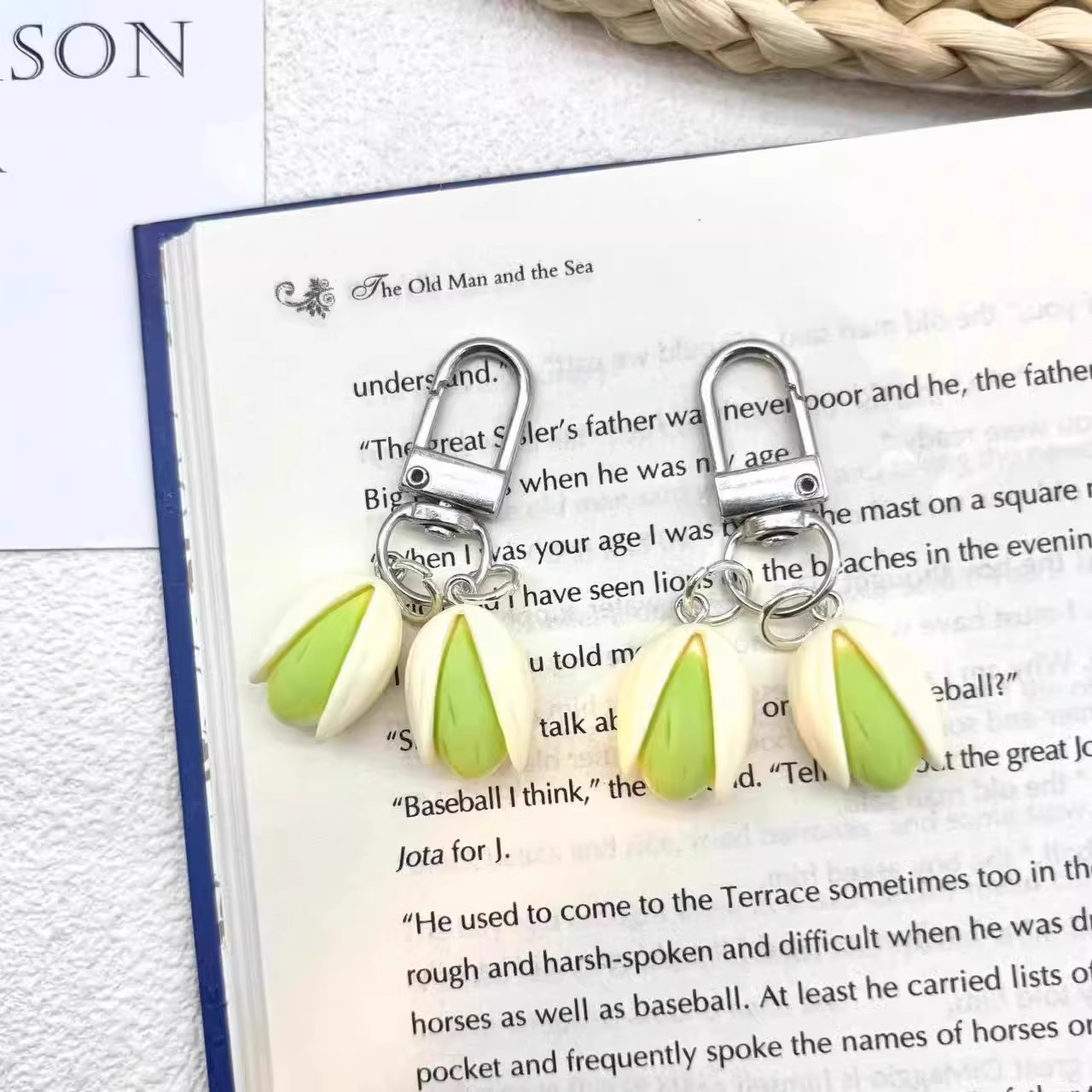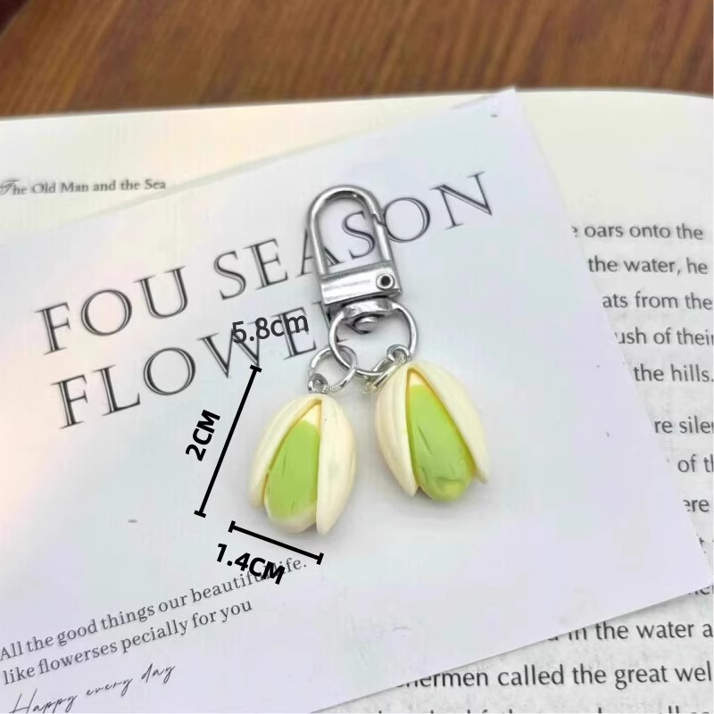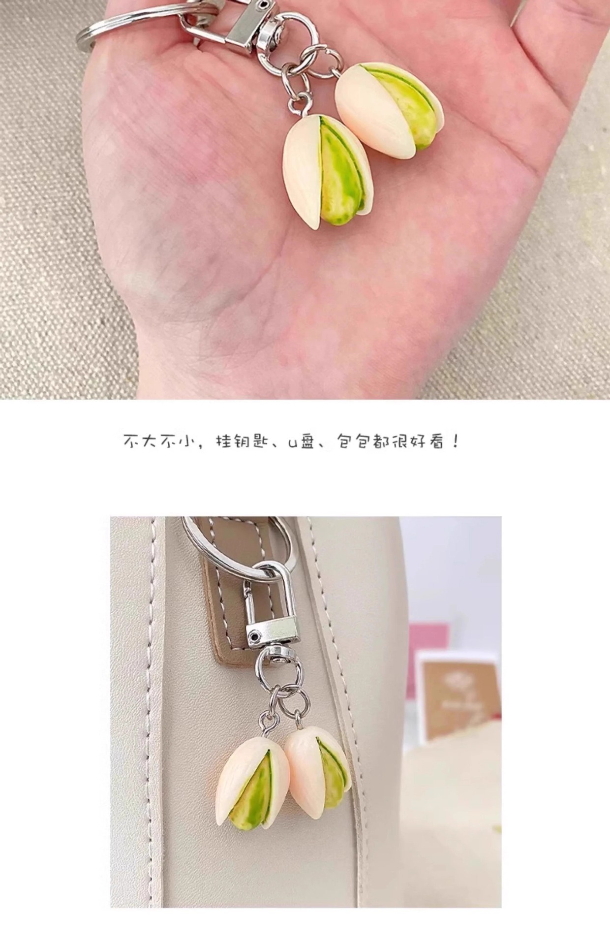 現物の開心果キーホルダー装飾バッグは精緻で、開心果の楽しいペンダントの個性的なアクセサリーの震え音に似せています。