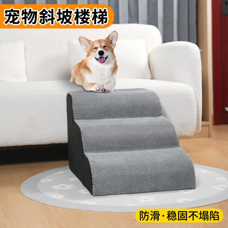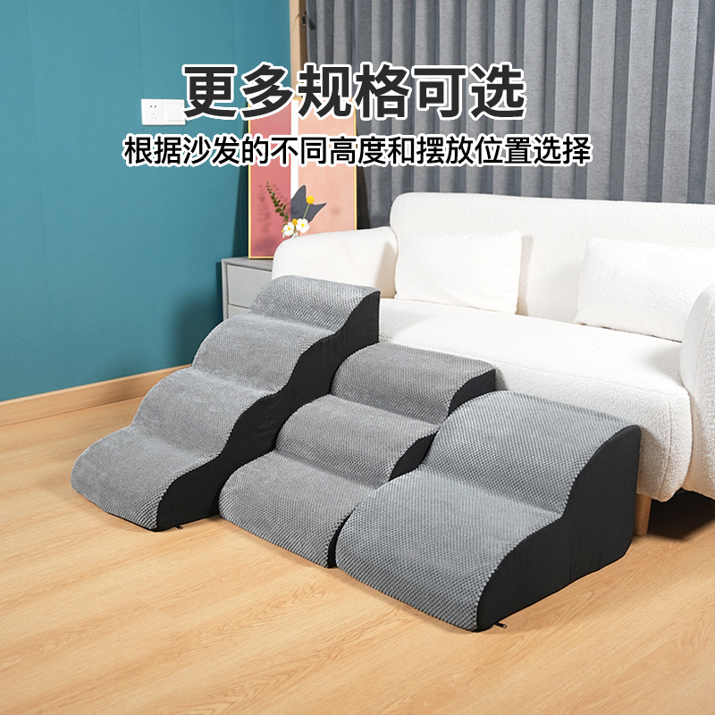 狗楼梯厂家可拆洗宠物爬梯灰色海绵台阶中小型犬泰迪沙发上床爬梯