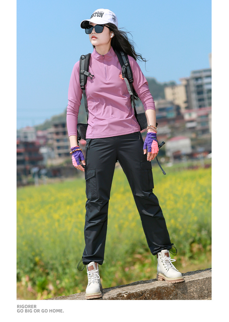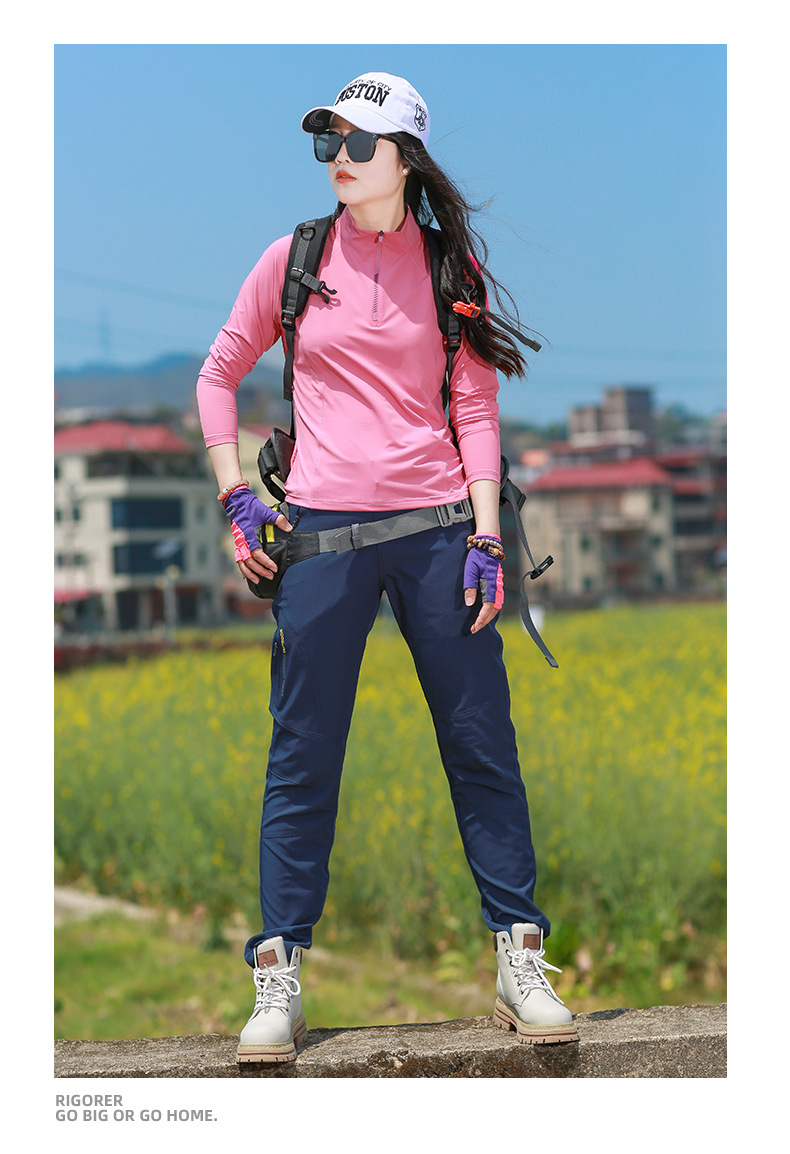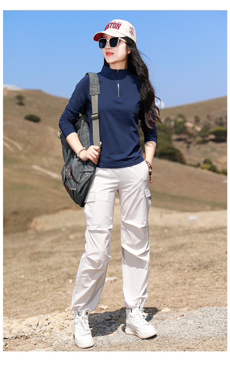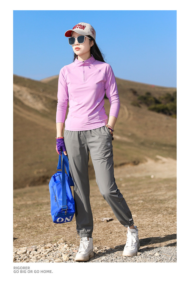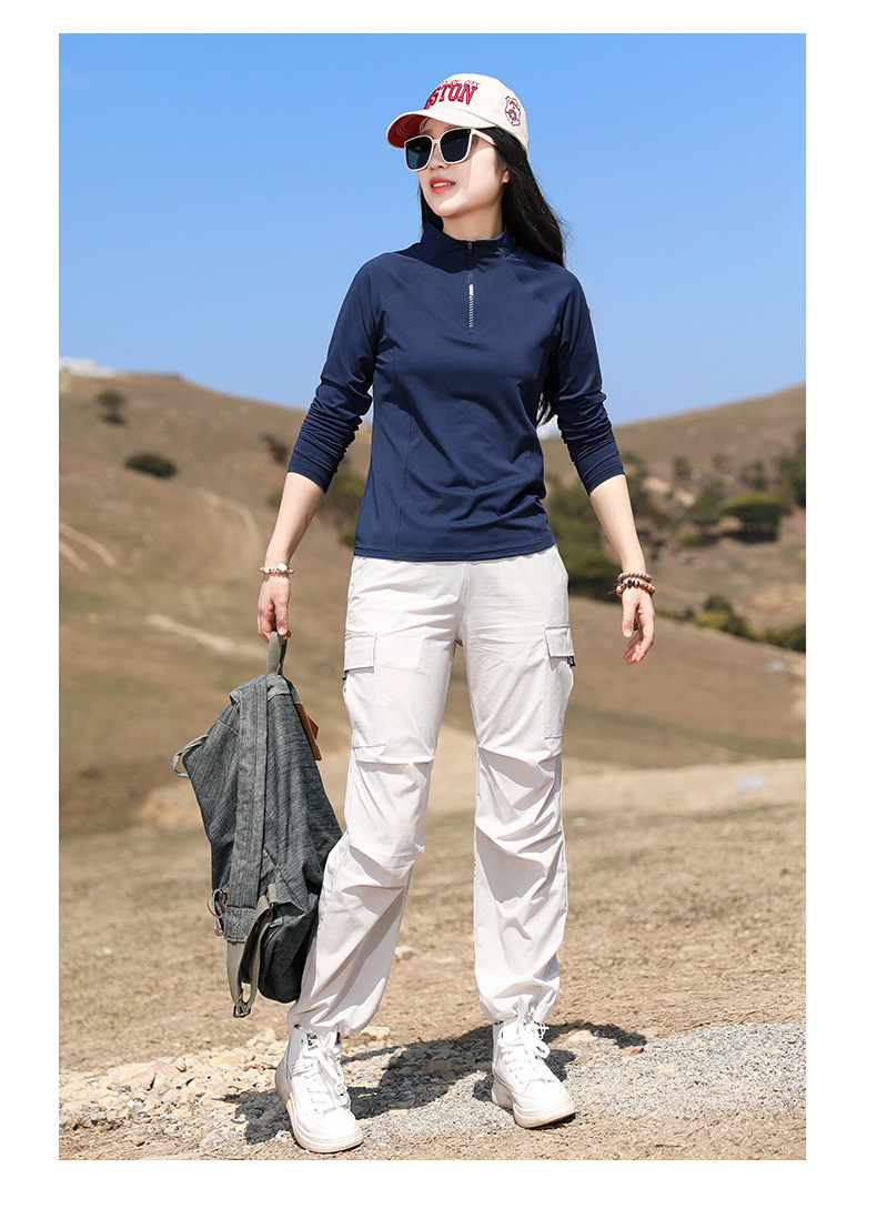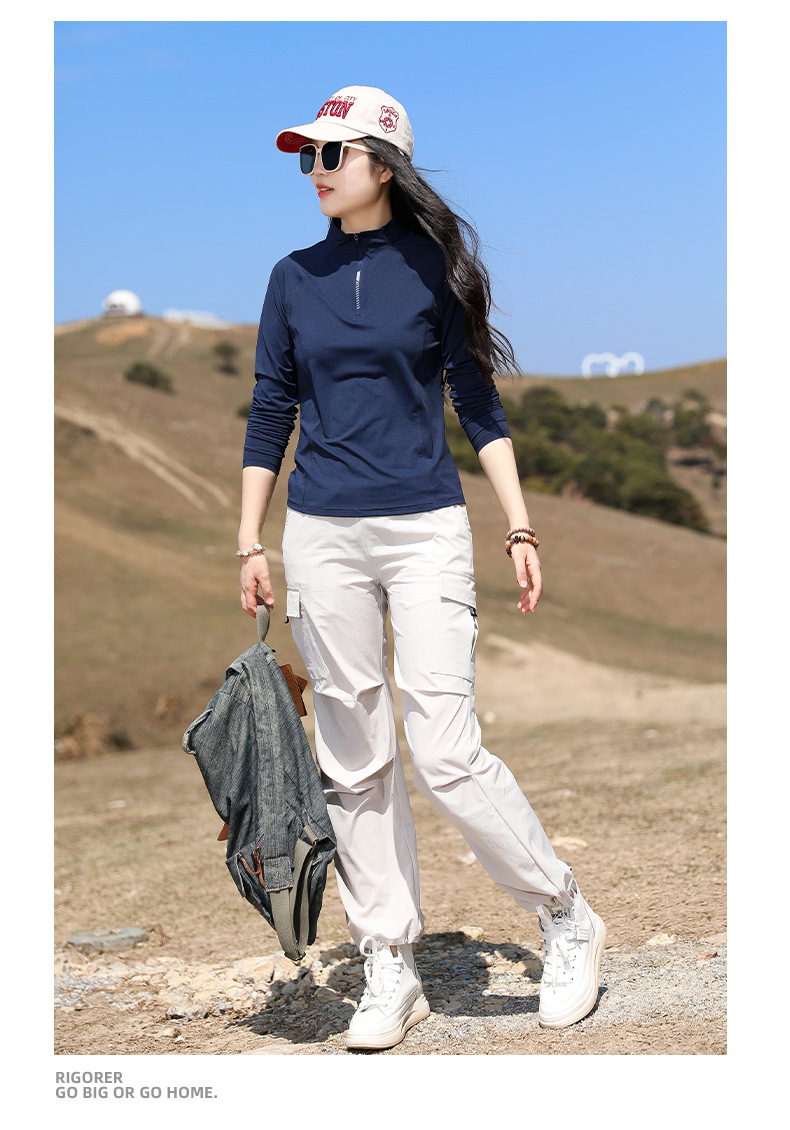 アウトドア速乾服女性用春秋厚金吸湿排汗通気徒歩登山速乾立襟長袖tシャツ