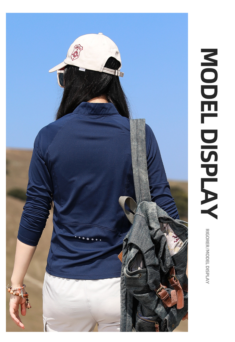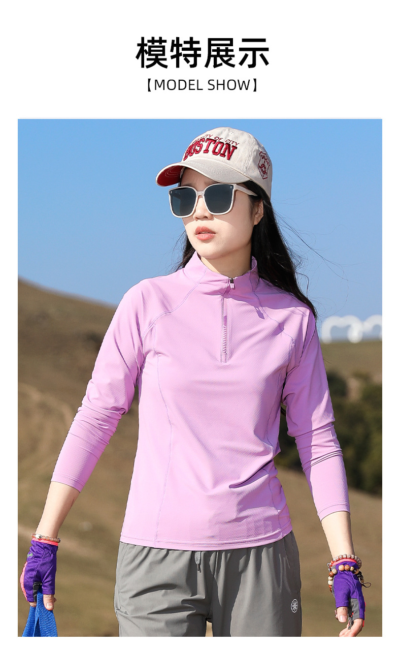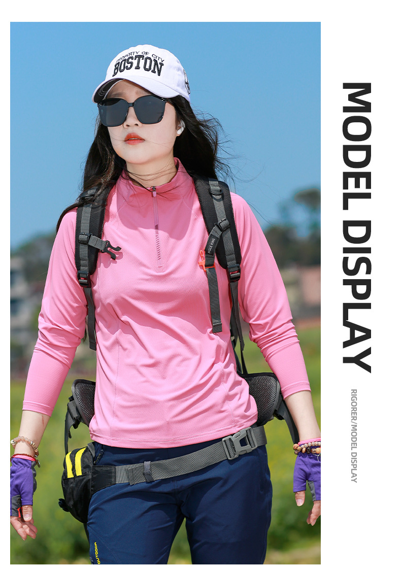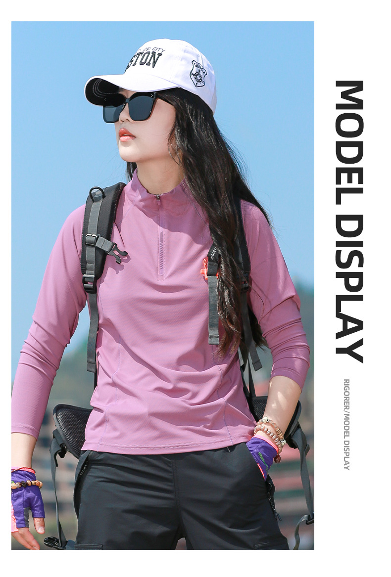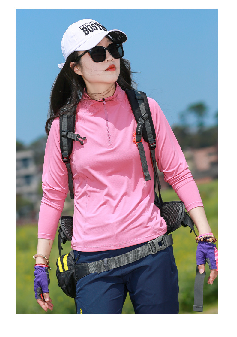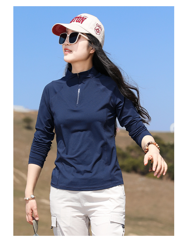 アウトドアスポーツ速乾tシャツ春秋夏軽薄弾力運動通気性女性立襟長袖日焼け止め快乾上着