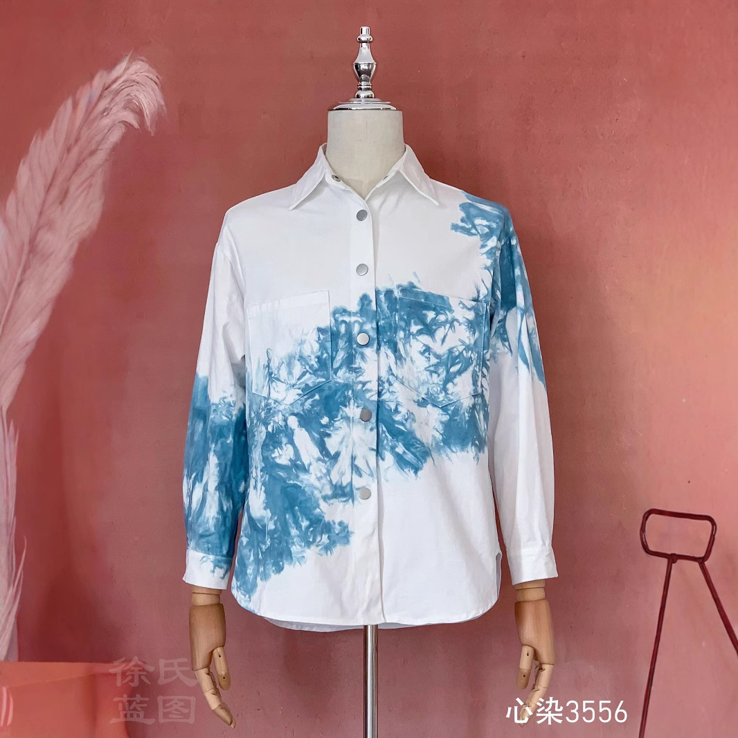 大理手染め民族風男式tシャツ夏レジャー休暇200g 21本精櫛綿藍染tシャツ