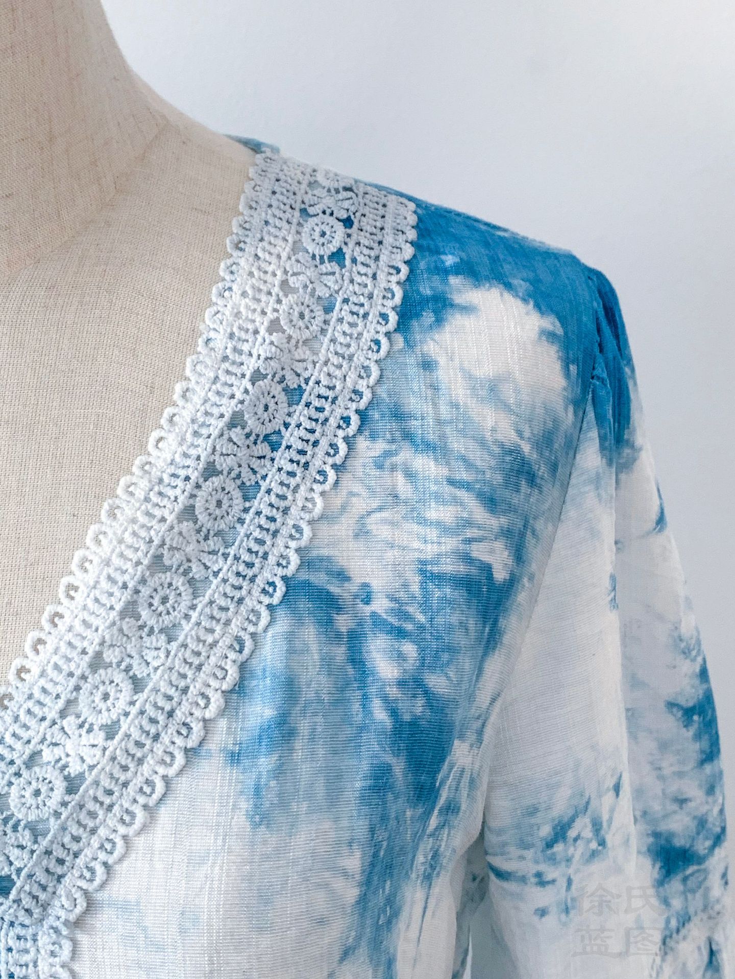 手作り絞り染め藍染めフレンチ多層サスペンダードレス三層ケーキスカート不規則な優しいスタイルのプリンセスドレス