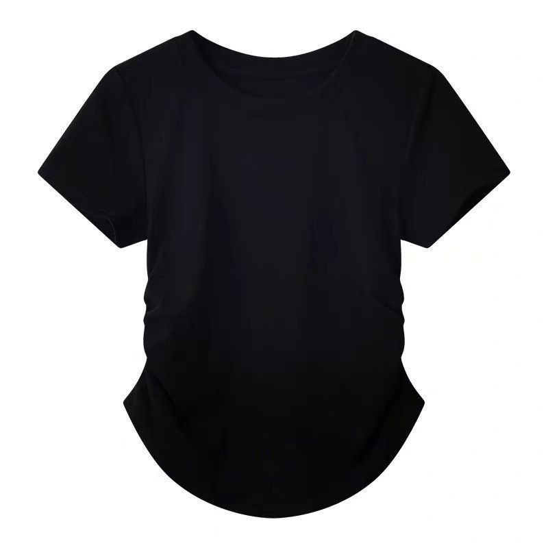 黒い半袖のシャツの女性の夏は腰の白いシフォンのシャツのシャツの高級感の小さい大衆のコウモリの袖の短い上着を収めます。