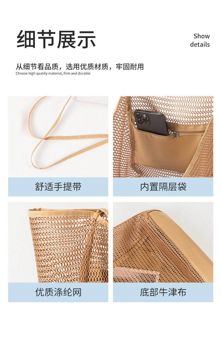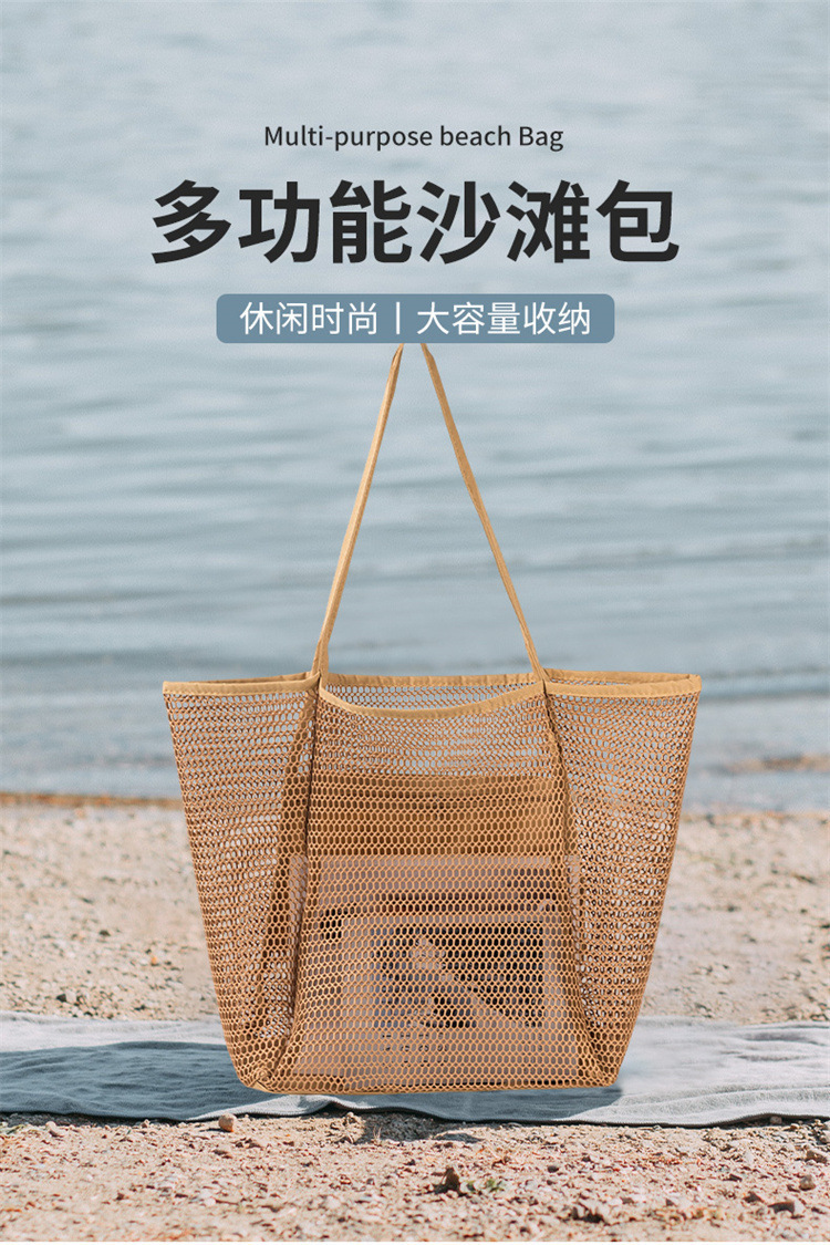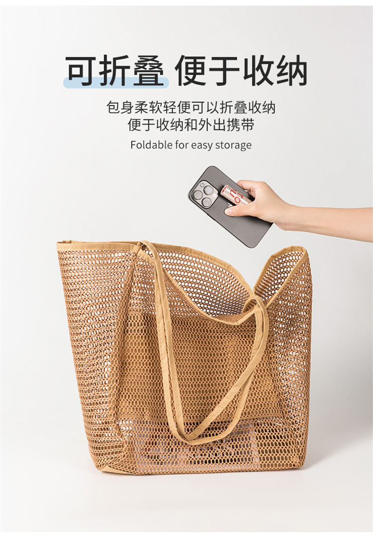 折叠沙滩包网眼网纱手提包女式单肩包夏季户外旅游必备游玩包
