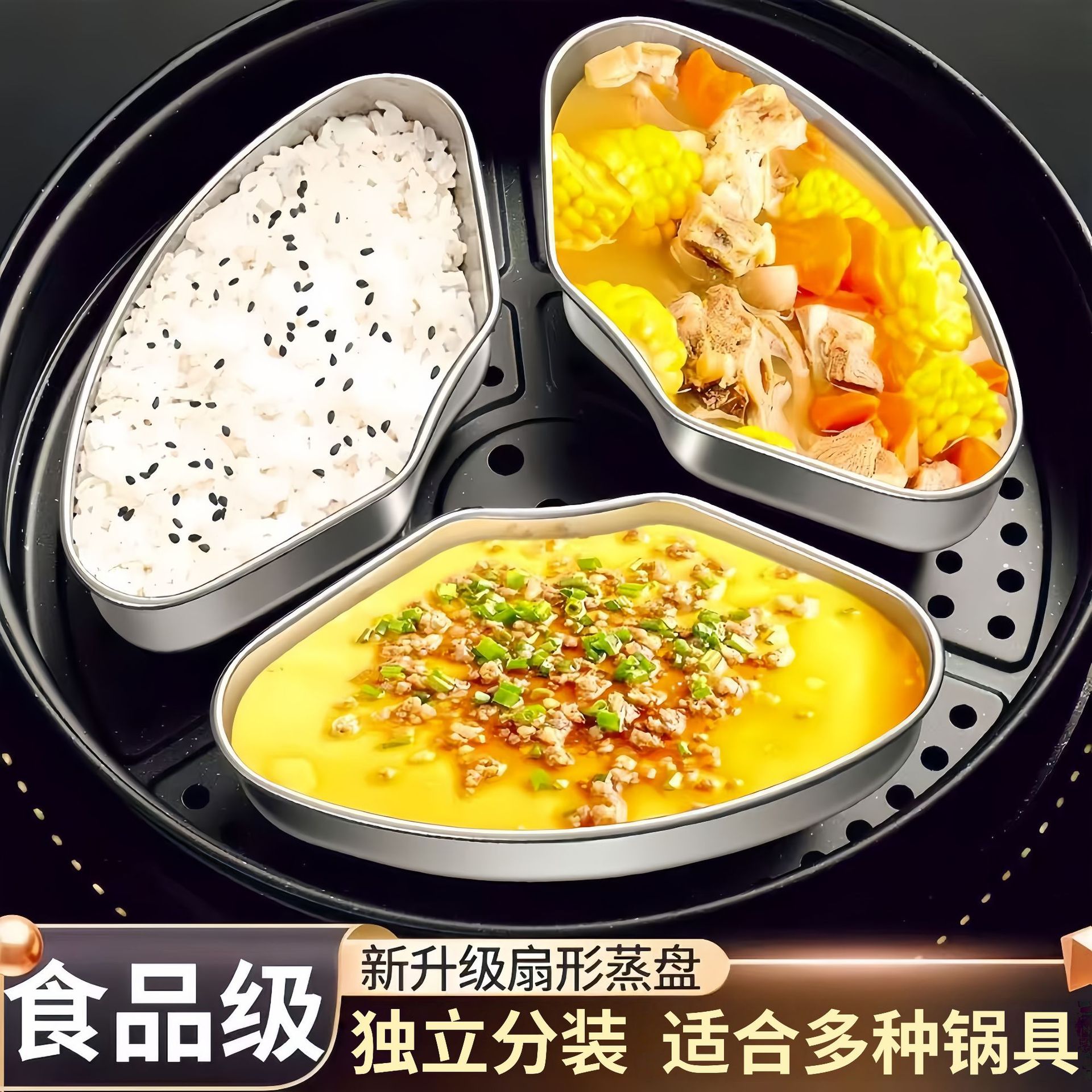不锈钢扇形蒸盘分隔防串味厨房家用饭菜蒸蛋隔水蒸盒蒸碗加厚耐用