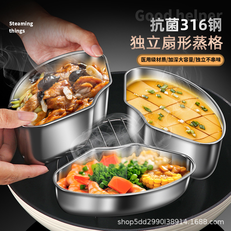 特厚不锈钢扇形蒸盒电饭煲蒸碗小煮锅分格蒸盘家用蒸笼屉蒸菜神器