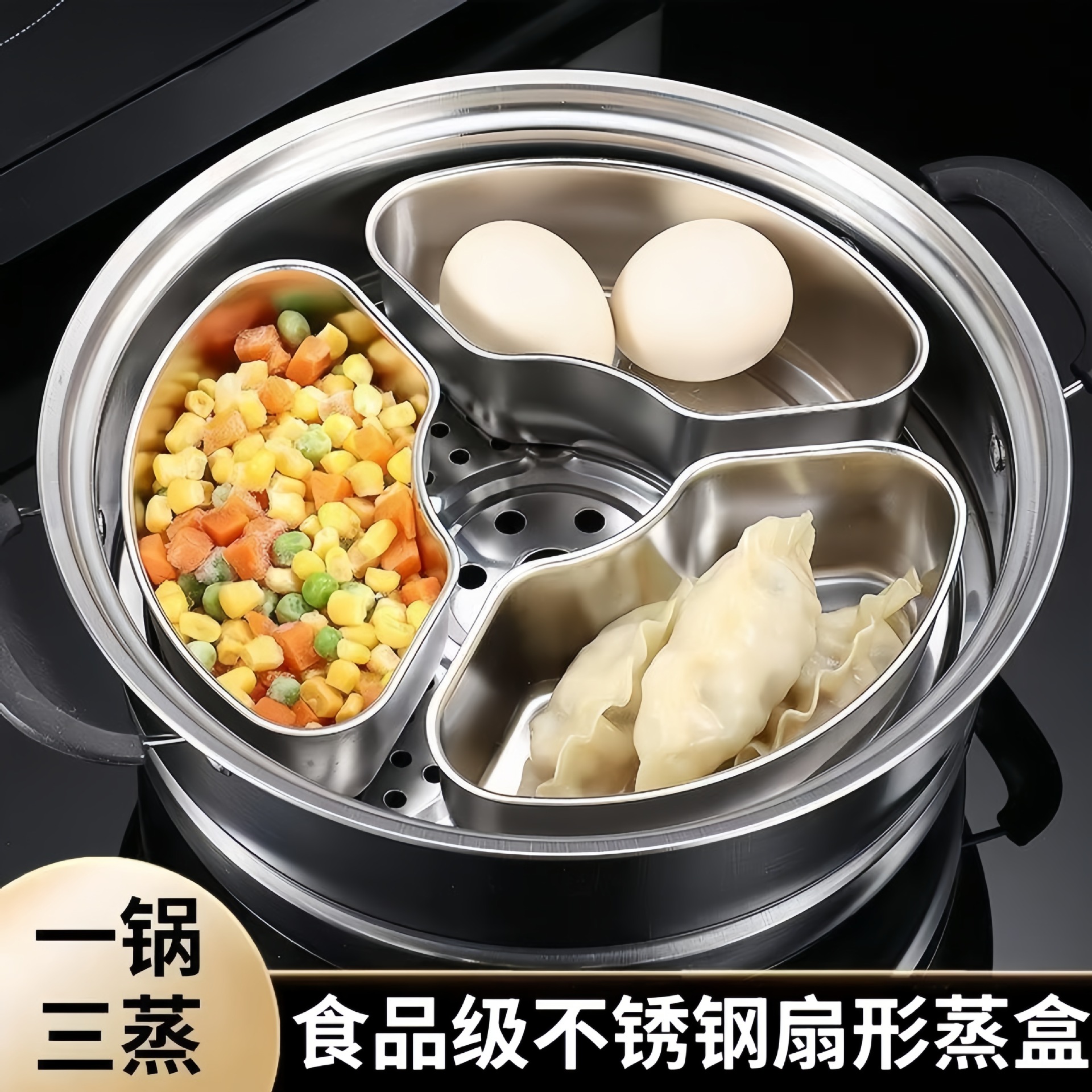 410ステンレス扇形蒸し器蒸し器分格蒸し器蒸し器蒸し器神器食品級一鍋三蒸し器