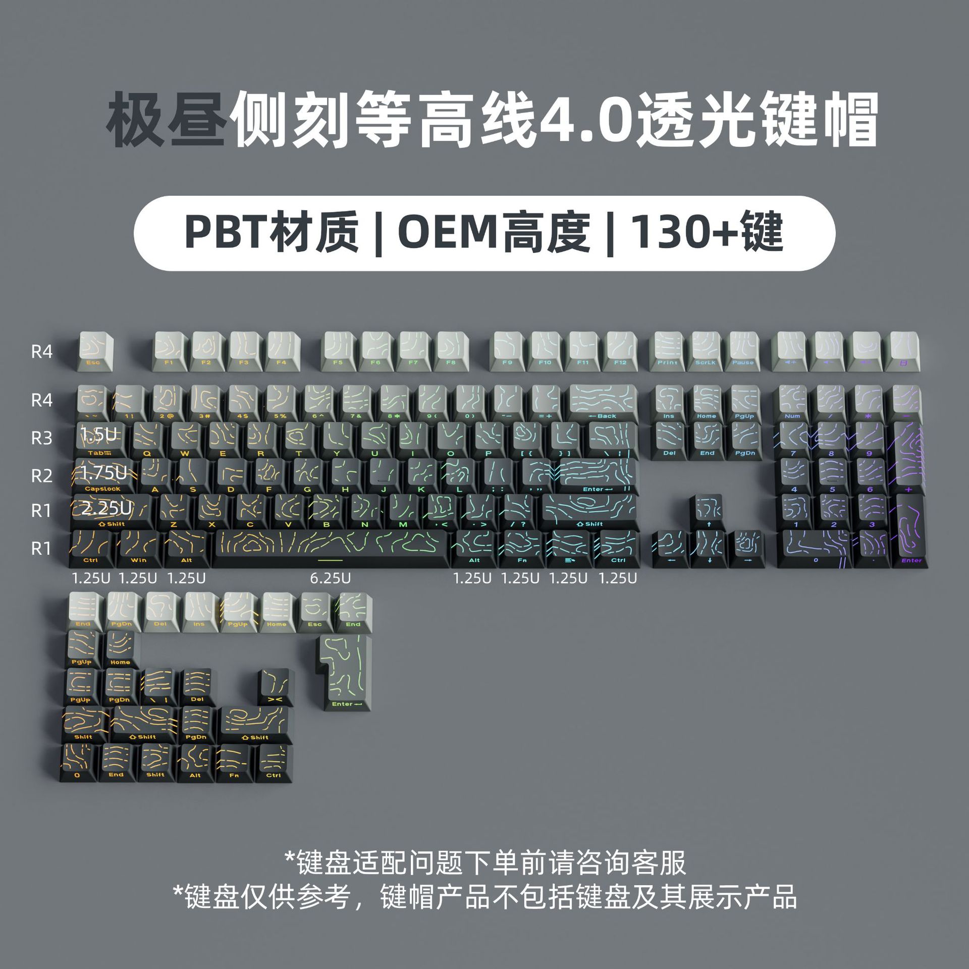 等高線側刻グラデーションキーキャップ4.0線文字発光カスタマイズ個性側刻キーキャップ