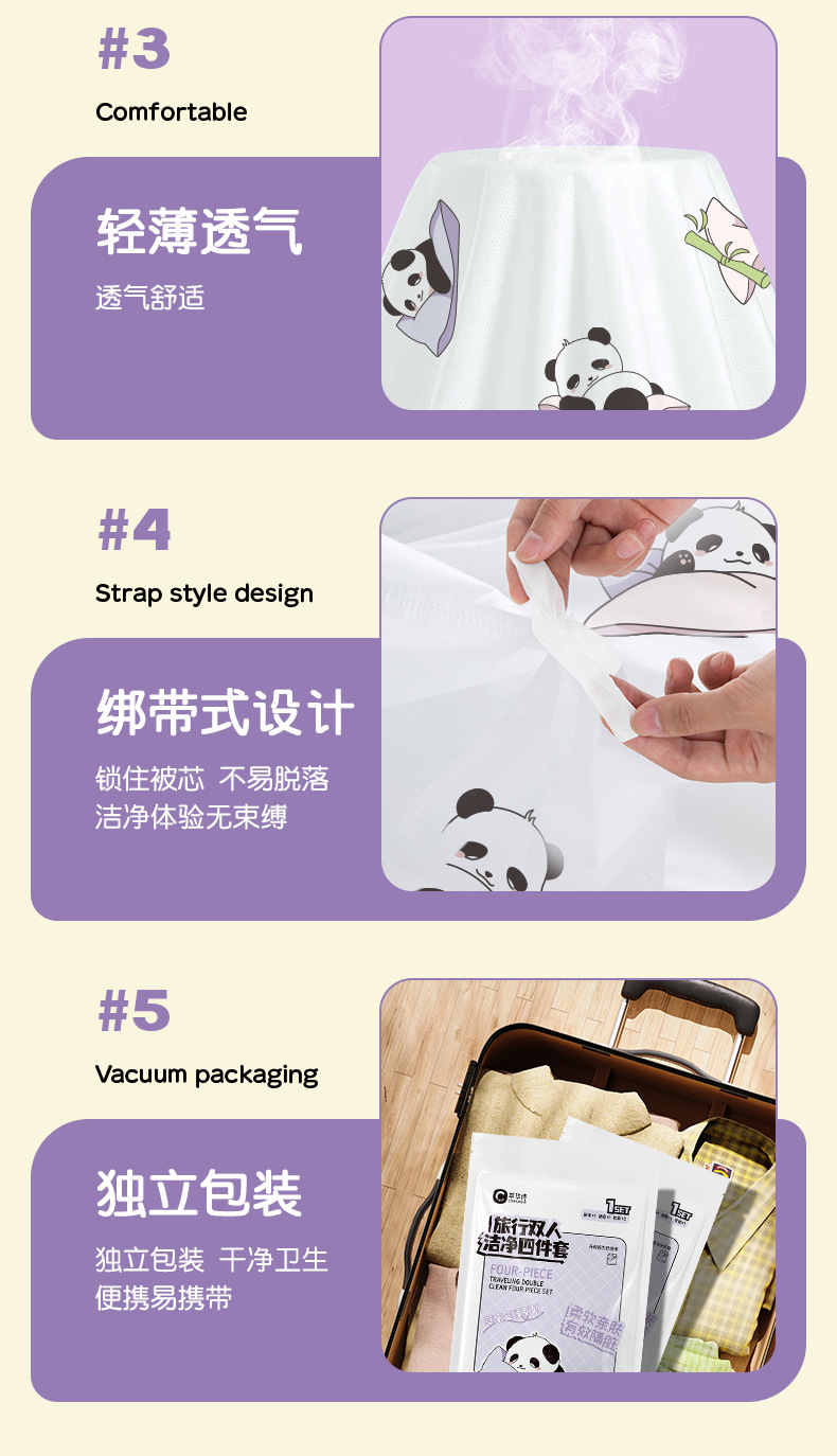 旅行4点セットプリント使い捨てシーツセット汚れた寝袋ホテルの寝具枕カバー卸売り