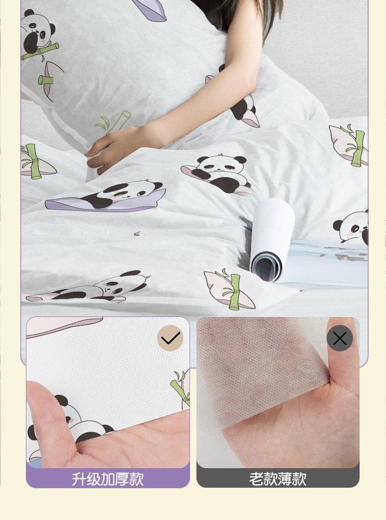 使い捨てシーツ4点セット漫画プリント布団カバー枕カバーホテル出張携帯男女ダブルベッド用品