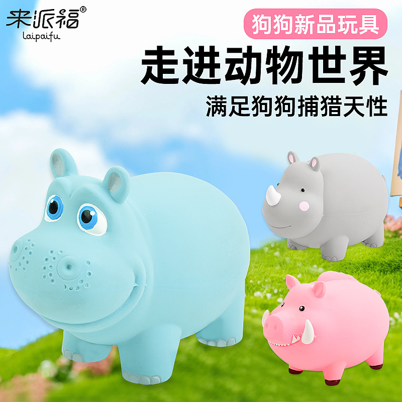 来派福宠物玩具胖墩墩卡通河马犀牛造型中大狗狗磨牙发声乳胶玩具