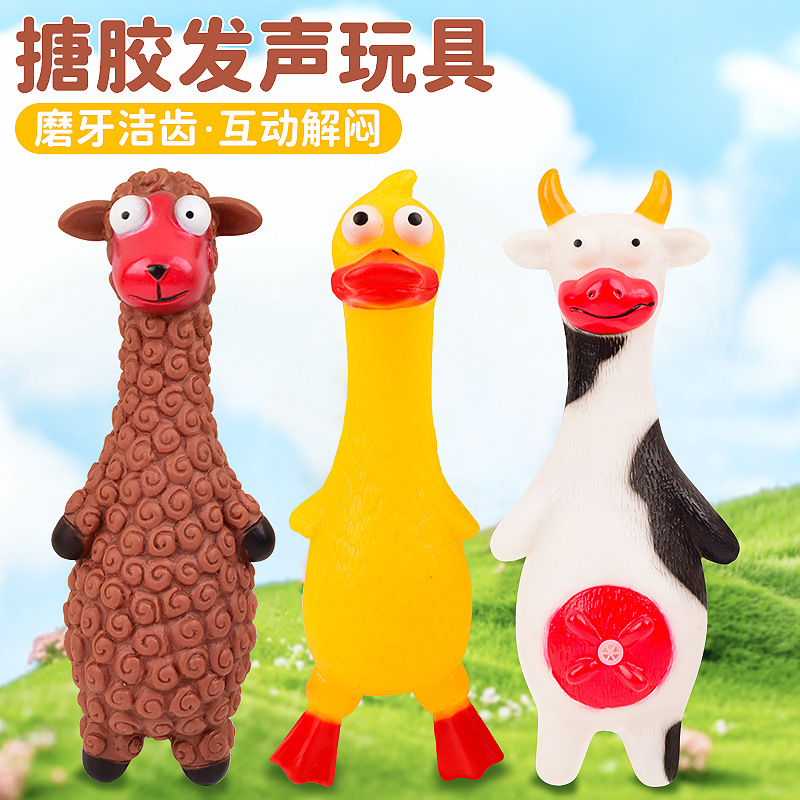 新商品のエナメル玩具乳牛ヒツジとアヒルの動物の発声ペット玩具が可愛いです。