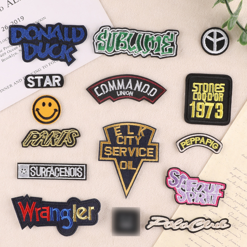 コンピュータの刺繍の標識の卸売りのバッジの英語のアルファベットのバッジの帽子の紋章の服装の補助材料は丁を補って刺繍を貼って布を貼ります