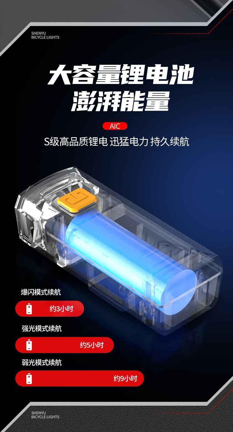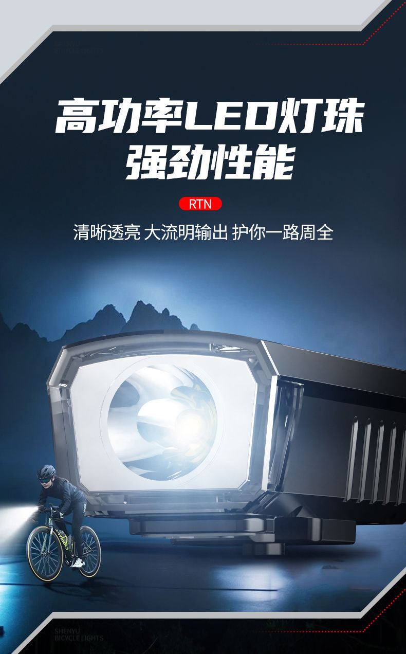 自転車ヘッドライト、夜間走行ライト、防水強力ライト、充電式懐中電灯、サイクリングマウンテンバイク防水マウンテンバイク超高輝度ライト