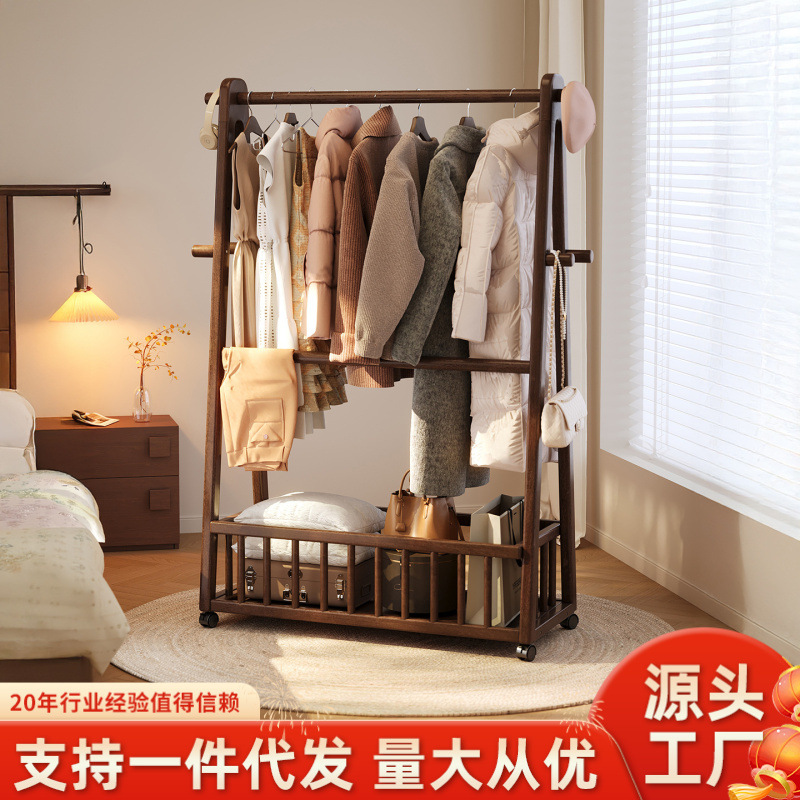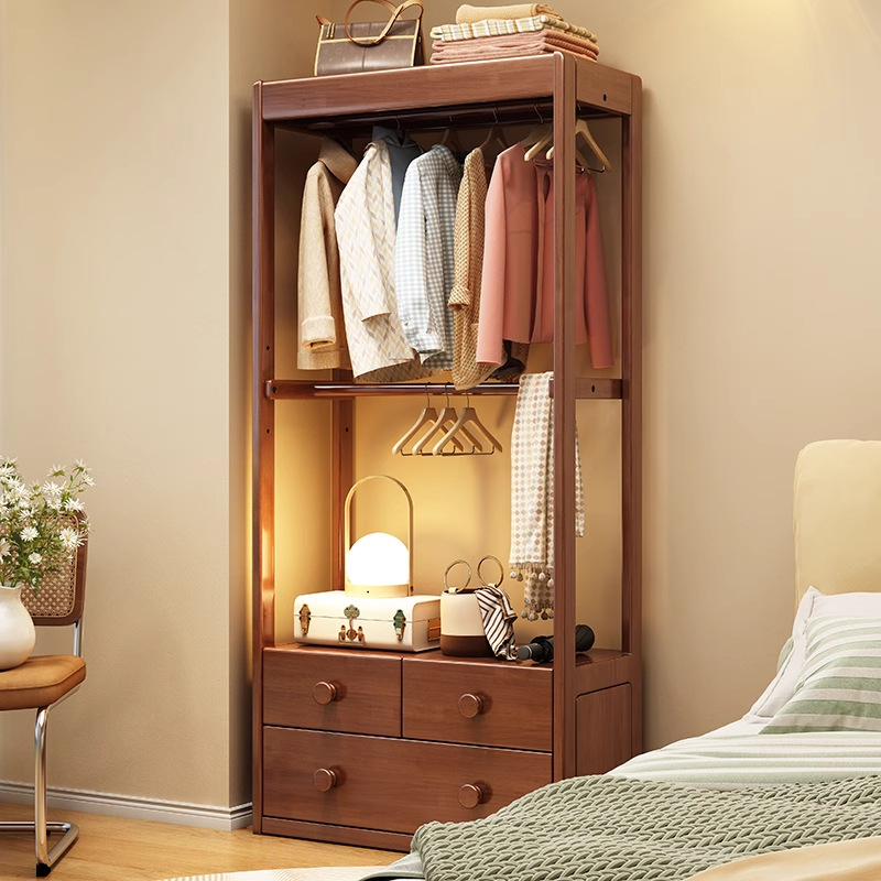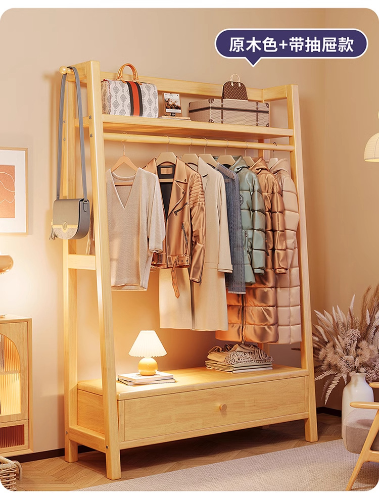 無垢材のコートラック床置き寝室ルームシンプルな洋服ラック引き出し付き家庭用小型衣類収納ラック