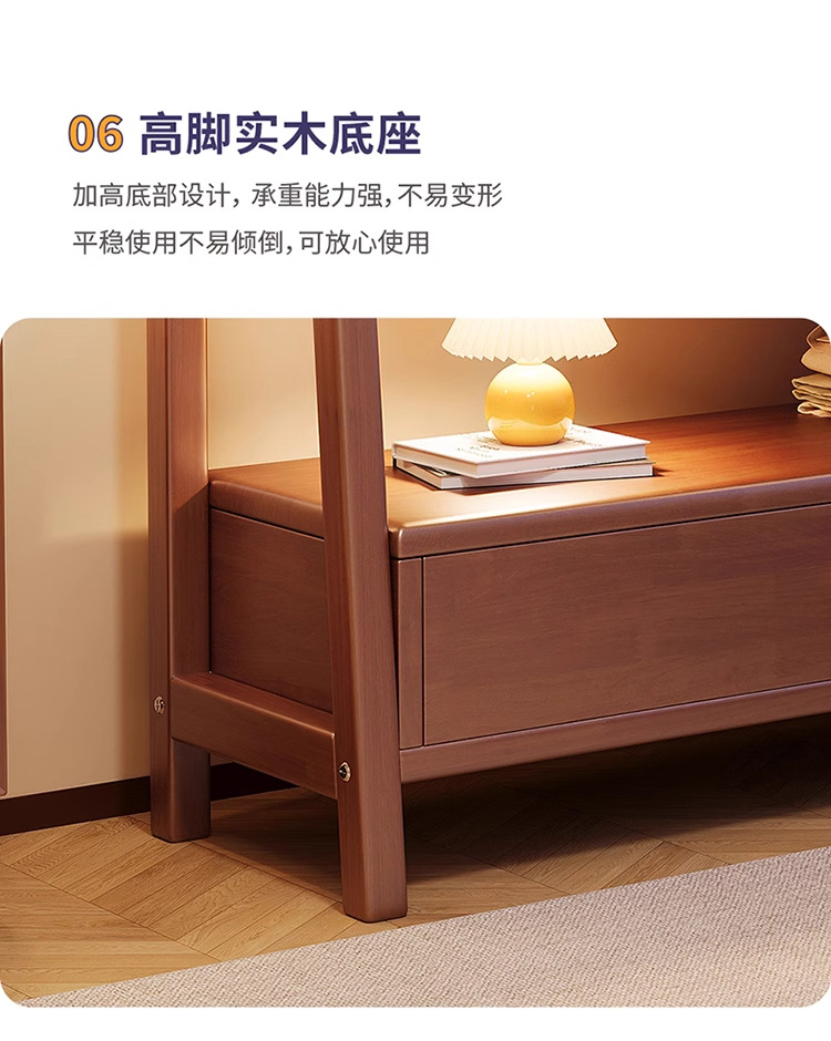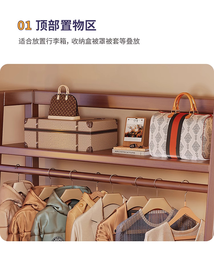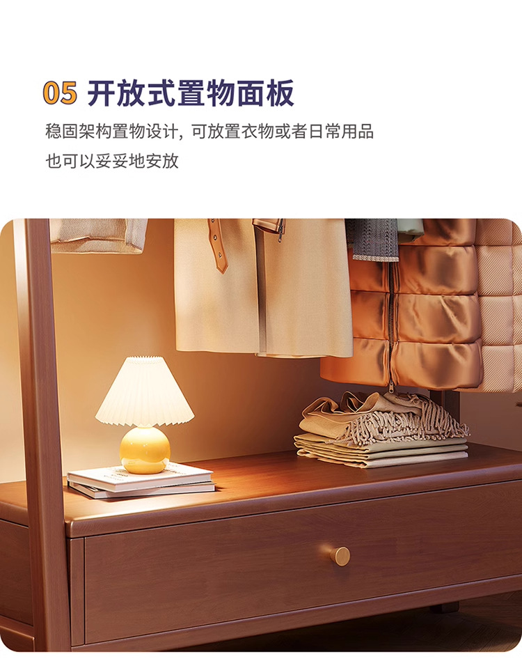 实木挂衣带抽屉衣帽落地卧室床头置物一体家用衣服纳
