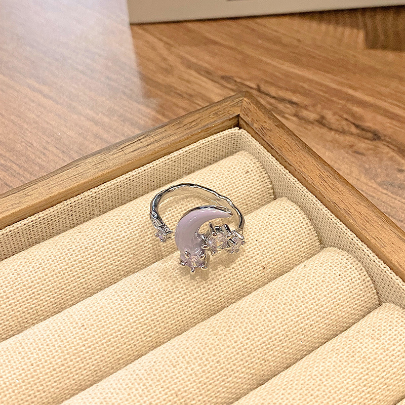 中国式のヴィンテージの軽い豪華な日月の星語の開口のグラデーションのマイクロはジルコンの指輪のシンプルなファッションの個性の装飾を入れます。