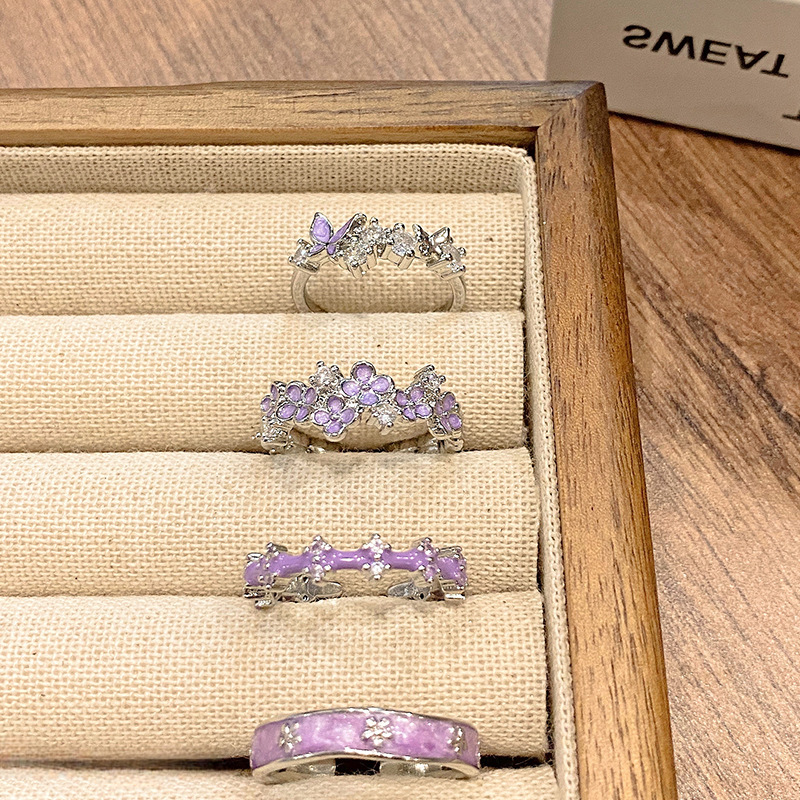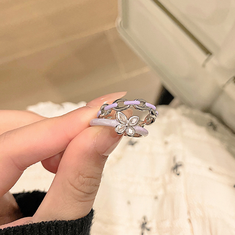 シンプルな日本のサツマイモの紫の魚の尾の口の指輪の女性の大衆の百合のデザイン感の甘いクールなエナメルの花の指の指輪