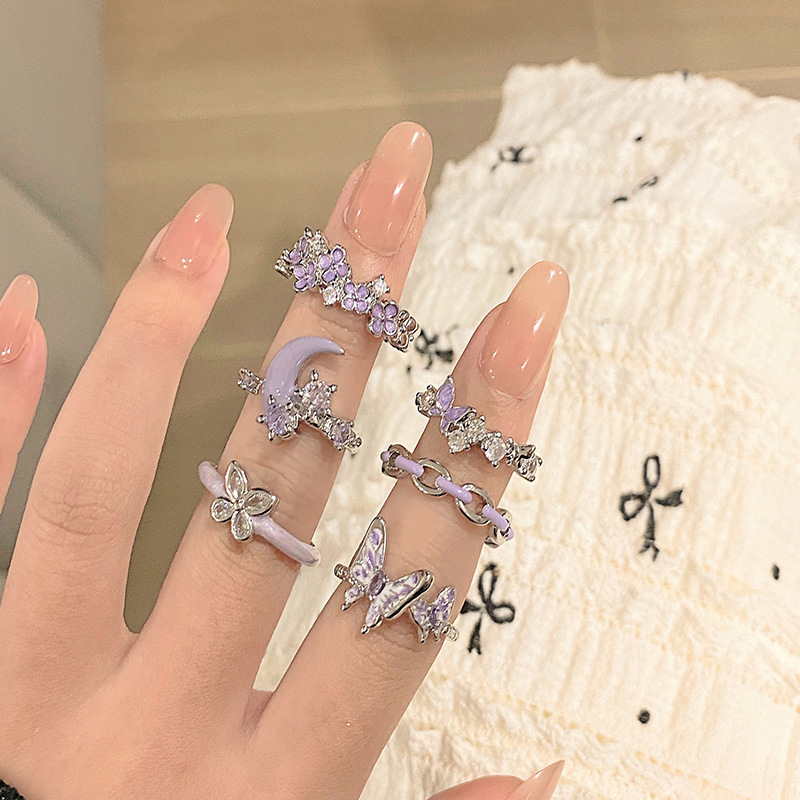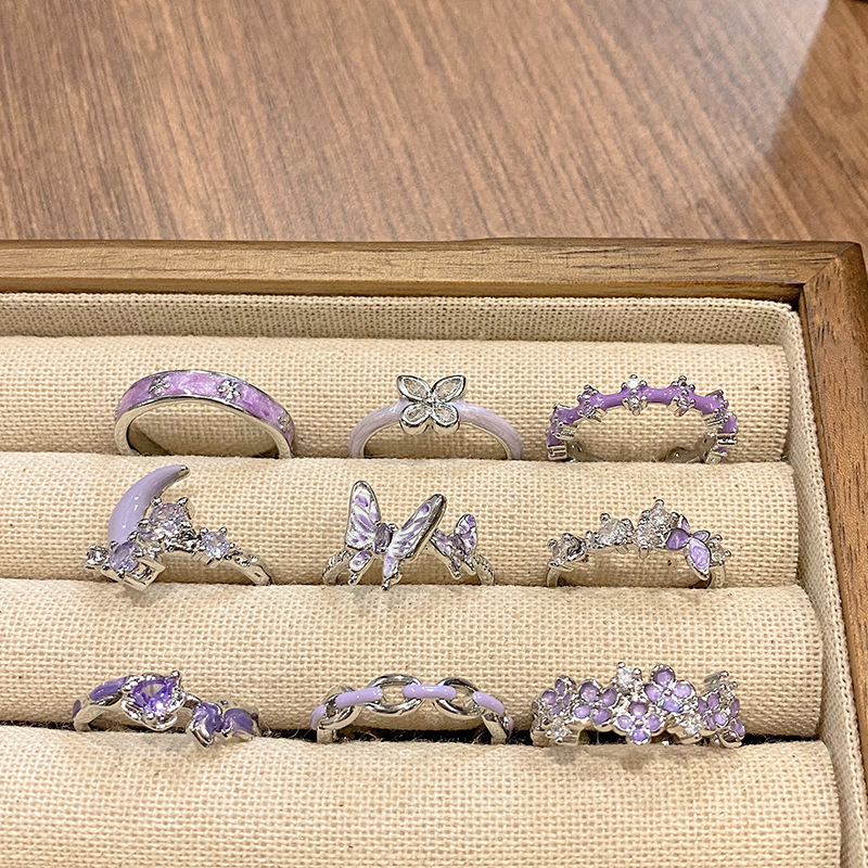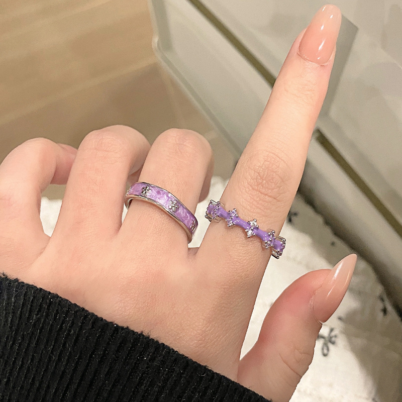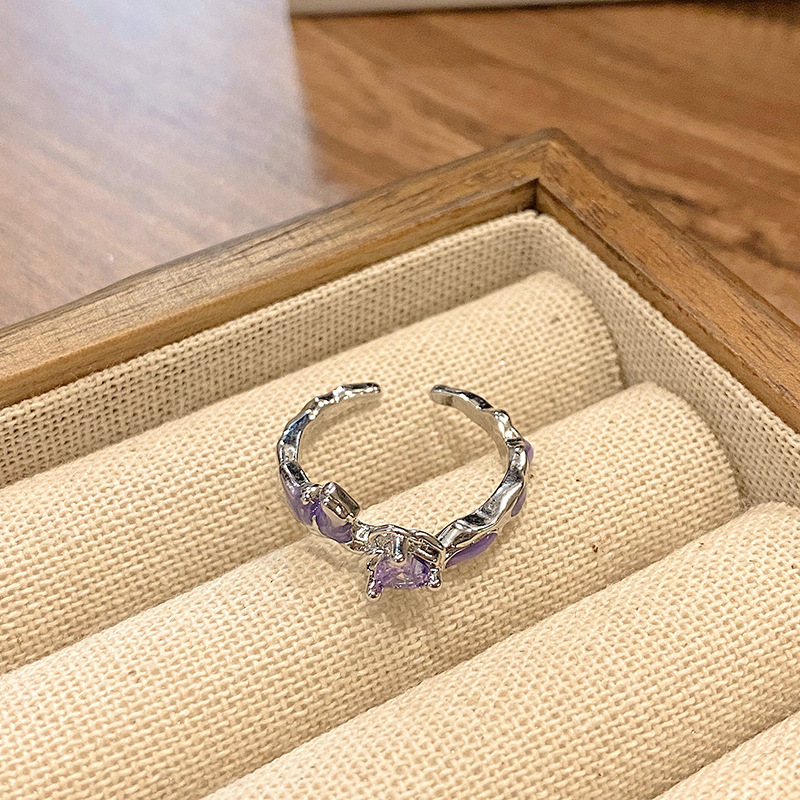ライトラグジュアリー、甘くてクールな幾何学的なパープルダイヤモンドオープンリング、女性用ニッチデザイン、クールなスタイル、ファッショナブルな個性、絶妙な人差し指リング