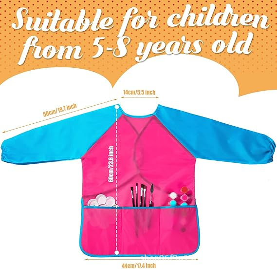 • 整体尺寸:儿童防水围裙的绘画长度为 23.6 英寸,袖长 19.7 英寸,宽度为 17.32 英寸;长袖设计适合 5 至 8 岁儿童,可为儿童提供全面保护;防水材料保持孩子的衣服清洁,无需担心弄脏自己,让您放心休息