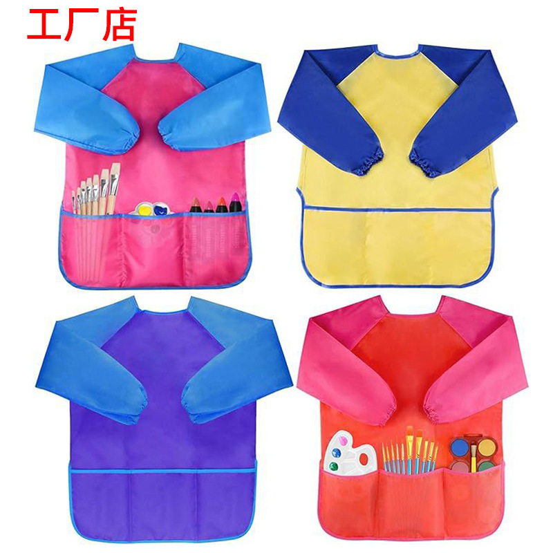 子供用防水カバー長袖エプロンセット美術服の絵のポケットを着て、逆着工場の卸売りをします。