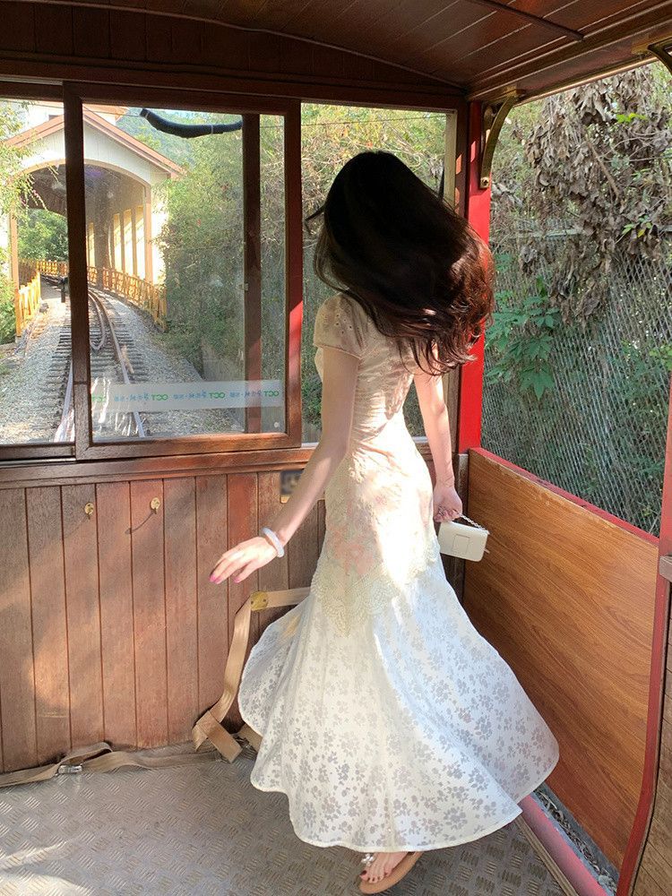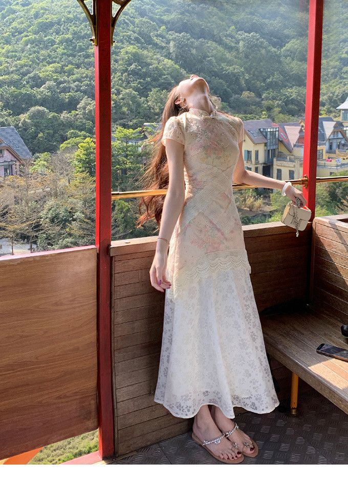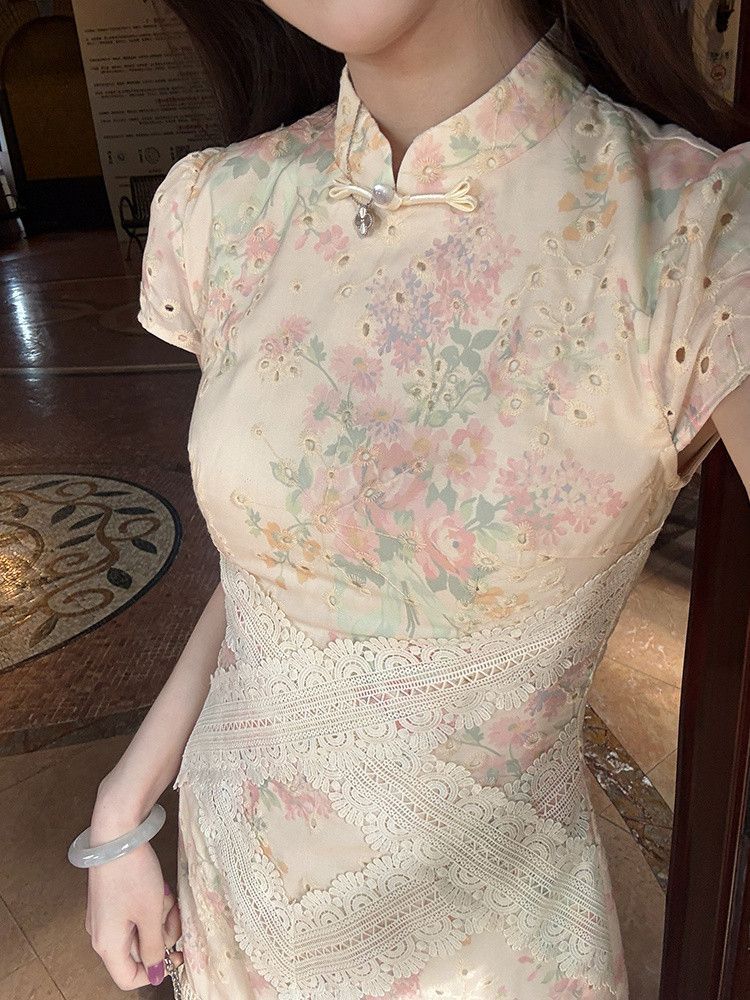 メーデー旅行独特の綺麗な新中国式改良チャイナドレス女性夏新作レース透かし彫り花修身ワンピース